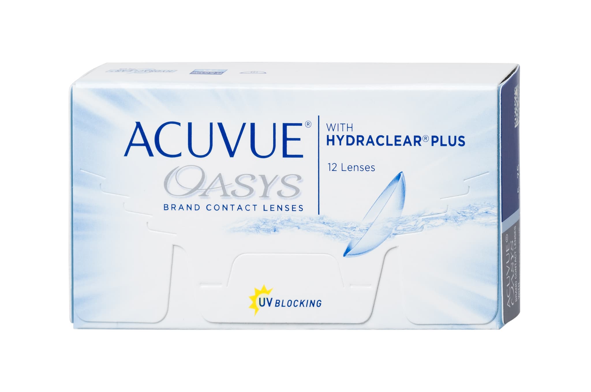 ACUVUE Oasys 12er Box. Hersteller: Johnson & Johnson, Wassergehalt: 38%. Inhalt: 12 Kontaktlinsen pro Packung. Wochenlinsen. Senofilcon A