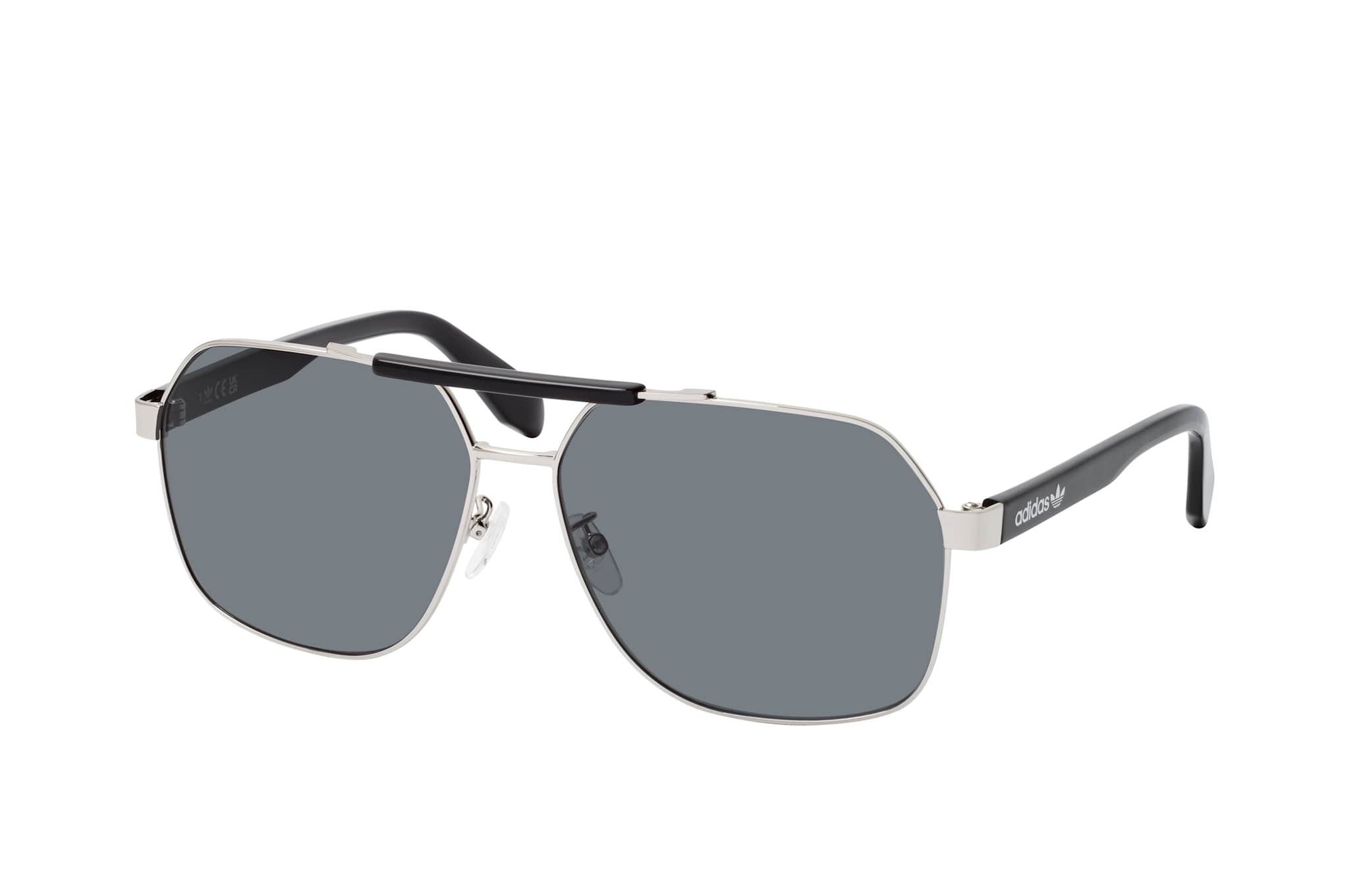 adidas Originals OR 0064 16A, Quadratische Sonnenbrille Herren. Farbe: Silber, Größe: Medium, Rahmentyp: FULLFRAME, Brillenbreite: 147mm, Glashöhe: 52mm, Material: Metall/Kunststoff. Stegbreite: 14mm. Glasfarbe: Grün. Mit UV400-Filter. Hersteller: Marcolin SpA. Style: MODERN