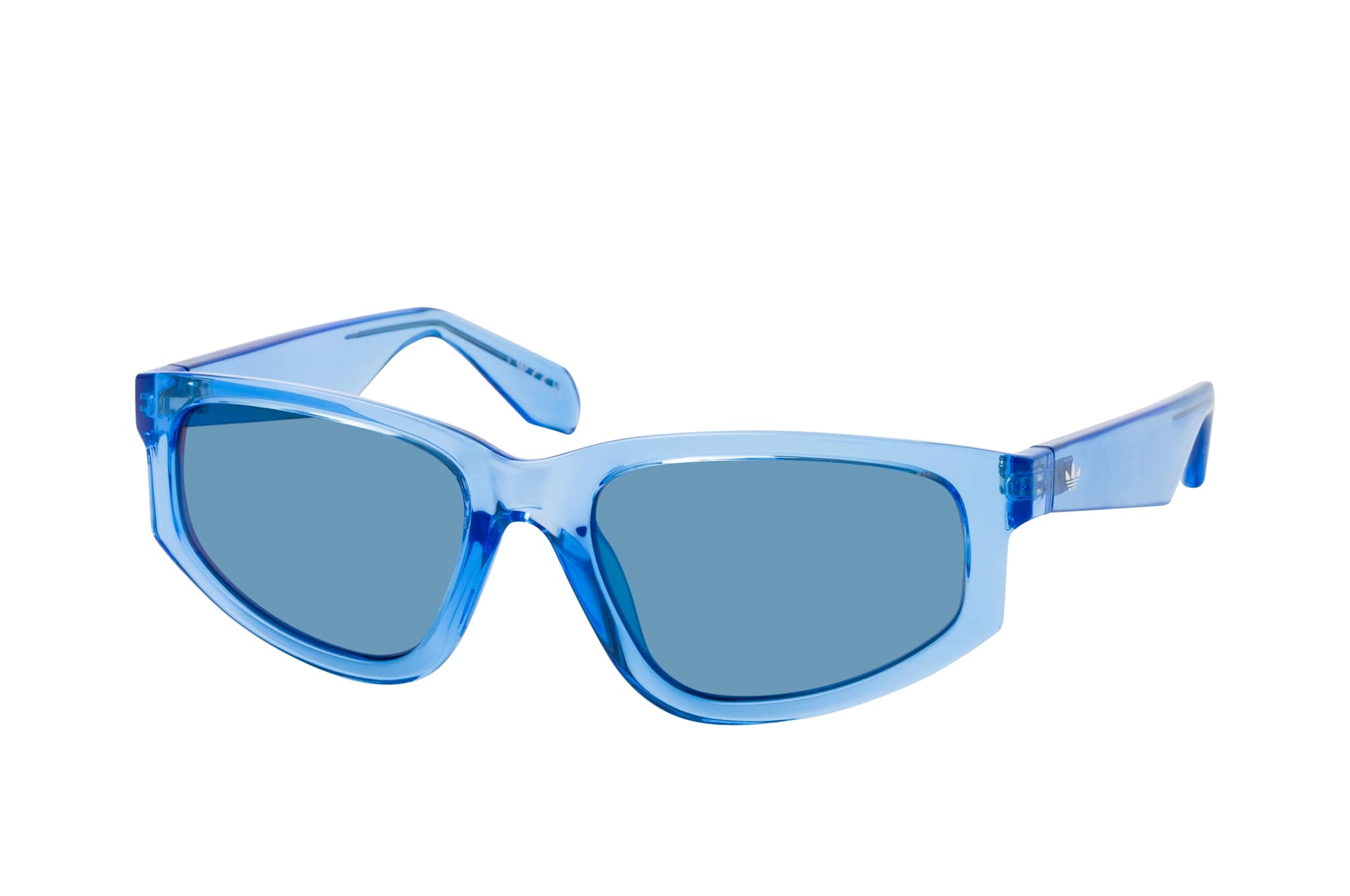 adidas Originals OR 0107 90X, Cat Eye Sonnenbrille Damen. Farbe: Blau, Größe: Medium, Rahmentyp: FULLFRAME, Brillenbreite: 141mm, Glashöhe: 39mm, Material: Kunststoff. Stegbreite: 18mm. Glasfarbe: Grau. Mit UV400-Filter. Hersteller: Marcolin (Deutschland) GmbH. Style: