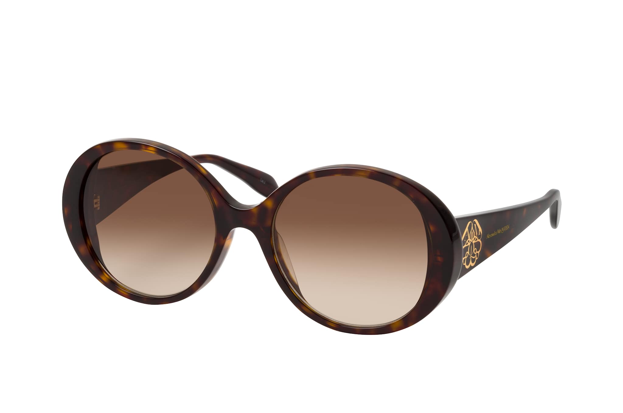 Alexander McQueen AM 0285S 003, Runde Sonnenbrille Damen. Farbe: Havana, Größe: Medium, Rahmentyp: FULLFRAME, Brillenbreite: 141mm, Glashöhe: 54mm, Material: Kunststoff. Stegbreite: 19mm. Glasfarbe: Braun. Mit UV400-Filter. Hersteller: Kering Eyewear DACH GmbH. Style: MODERN
