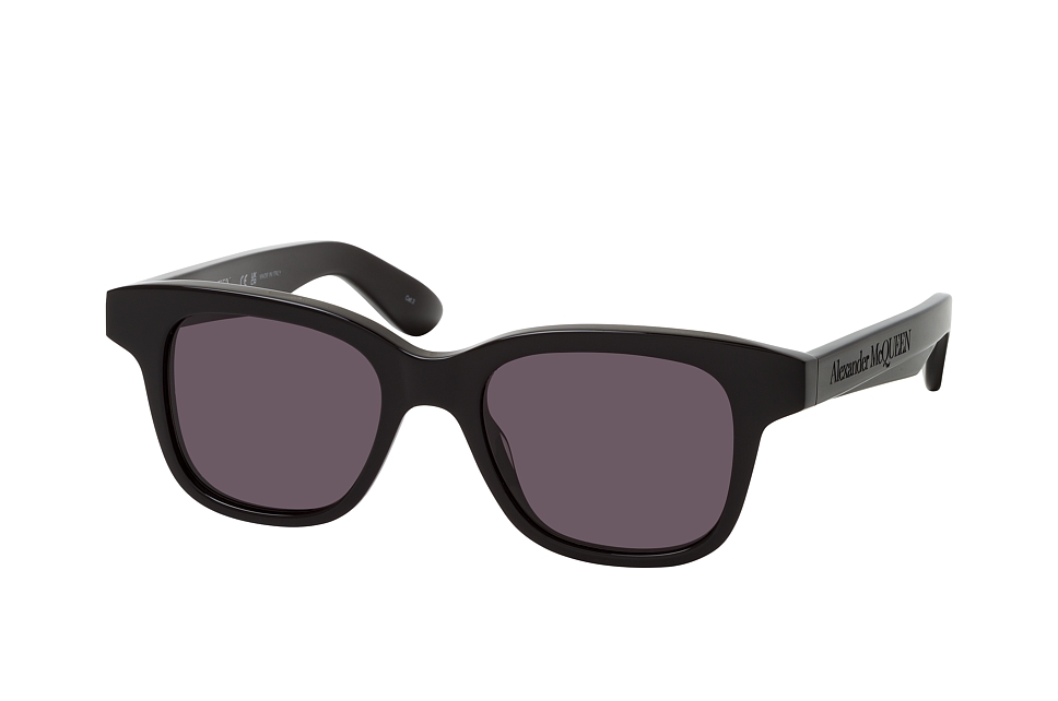 Alexander McQueen AM 0382S 001, Rechteckige Sonnenbrille Unisex. Farbe: Schwarz, Größe: Medium, Rahmentyp: FULLFRAME, Brillenbreite: 140mm, Glashöhe: 40mm, Material: Kunststoff. Stegbreite: 18mm. Glasfarbe: Grau. Mit UV400-Filter. Hersteller: Kering Eyewear DACH GmbH. Style: