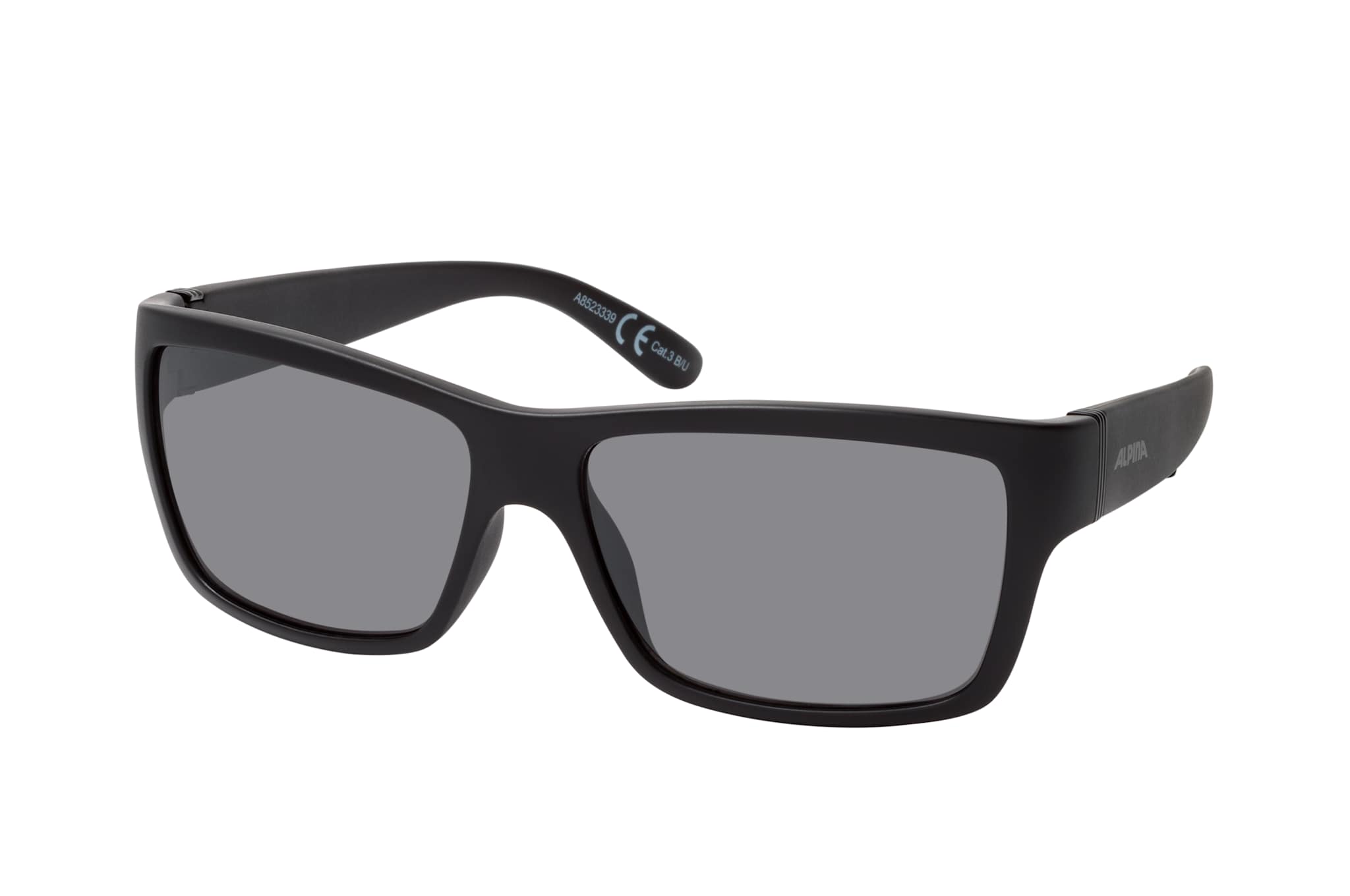 Alpina Kacey A8523 339, Quadratische Sonnenbrille Unisex. Farbe: Schwarz, Größe: Medium, Rahmentyp: FULLFRAME, Brillenbreite: 139mm, Glashöhe: 41mm, Material: Kunststoff. Stegbreite: 16mm. Glasfarbe: Grau. Mit UV400-Filter. Hersteller: Alpina. Style: CLASSIC