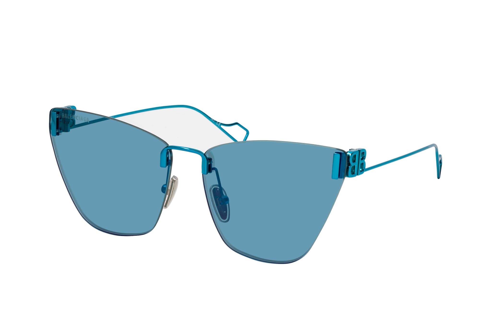 Balenciaga BB 0111S 003, Cat Eye Sonnenbrille Damen. Farbe: Blau, Größe: Medium, Rahmentyp: FRAMELESS, Brillenbreite: 138mm, Glashöhe: 53mm, Material: Metall. Stegbreite: 14mm. Glasfarbe: Blau. Mit UV400-Filter. Hersteller: Kering Eyewear DACH GmbH. Style: EXTRAVAGANT