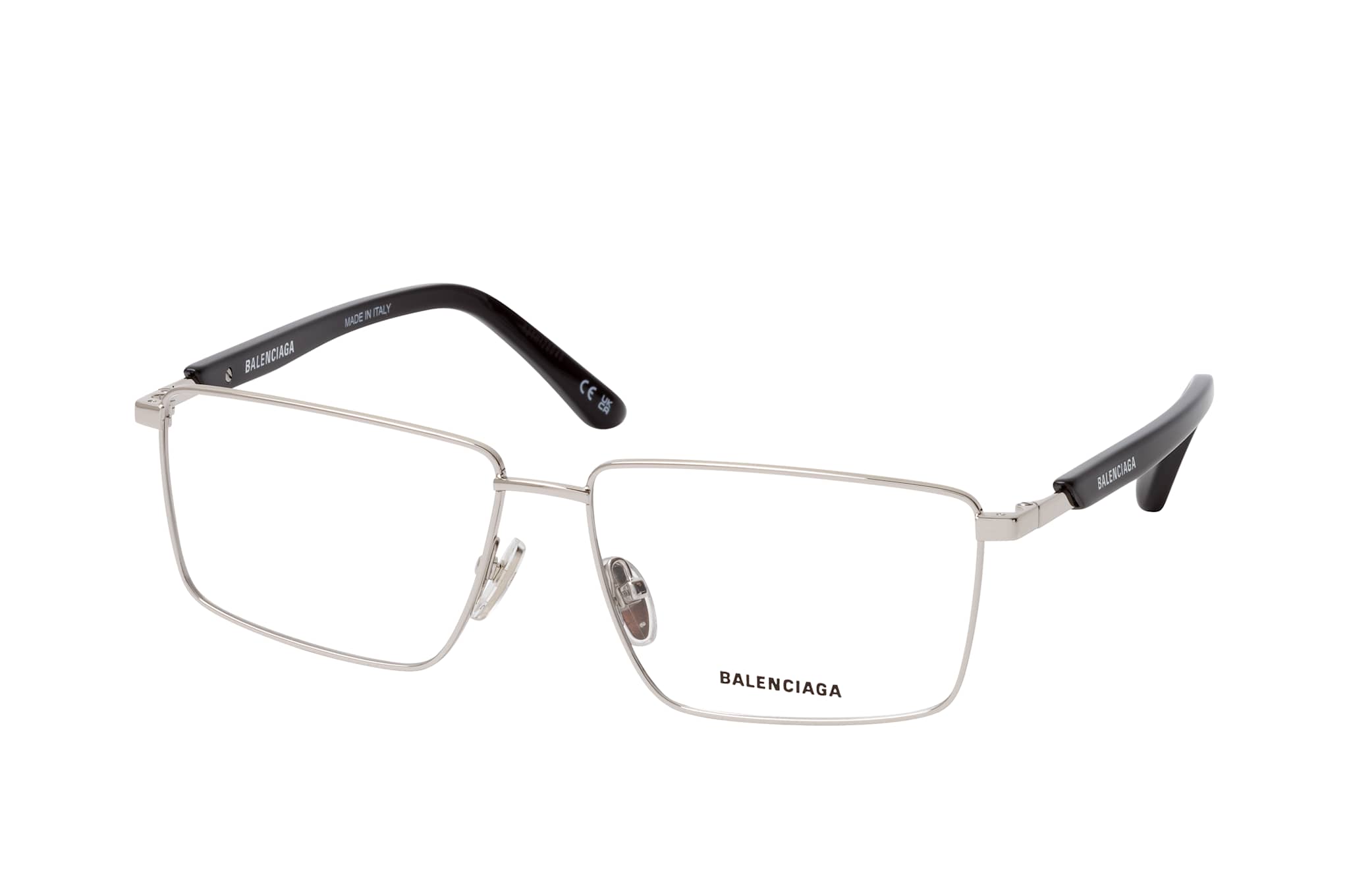 Balenciaga BB 0247O 001, Rechteckige Brille Herren. Farbe: Silber, Größe: Medium, Rahmentyp: FULLFRAME, Brillenbreite: 140mm, Glashöhe: 38mm, Material: Metall/Kunststoff. Stegbreite: 14mm. Glasfarbe: . Glasmaterial: Kunststoff/Metall.Hersteller: Kering Eyewear DACH GmbH. Style: MODERN