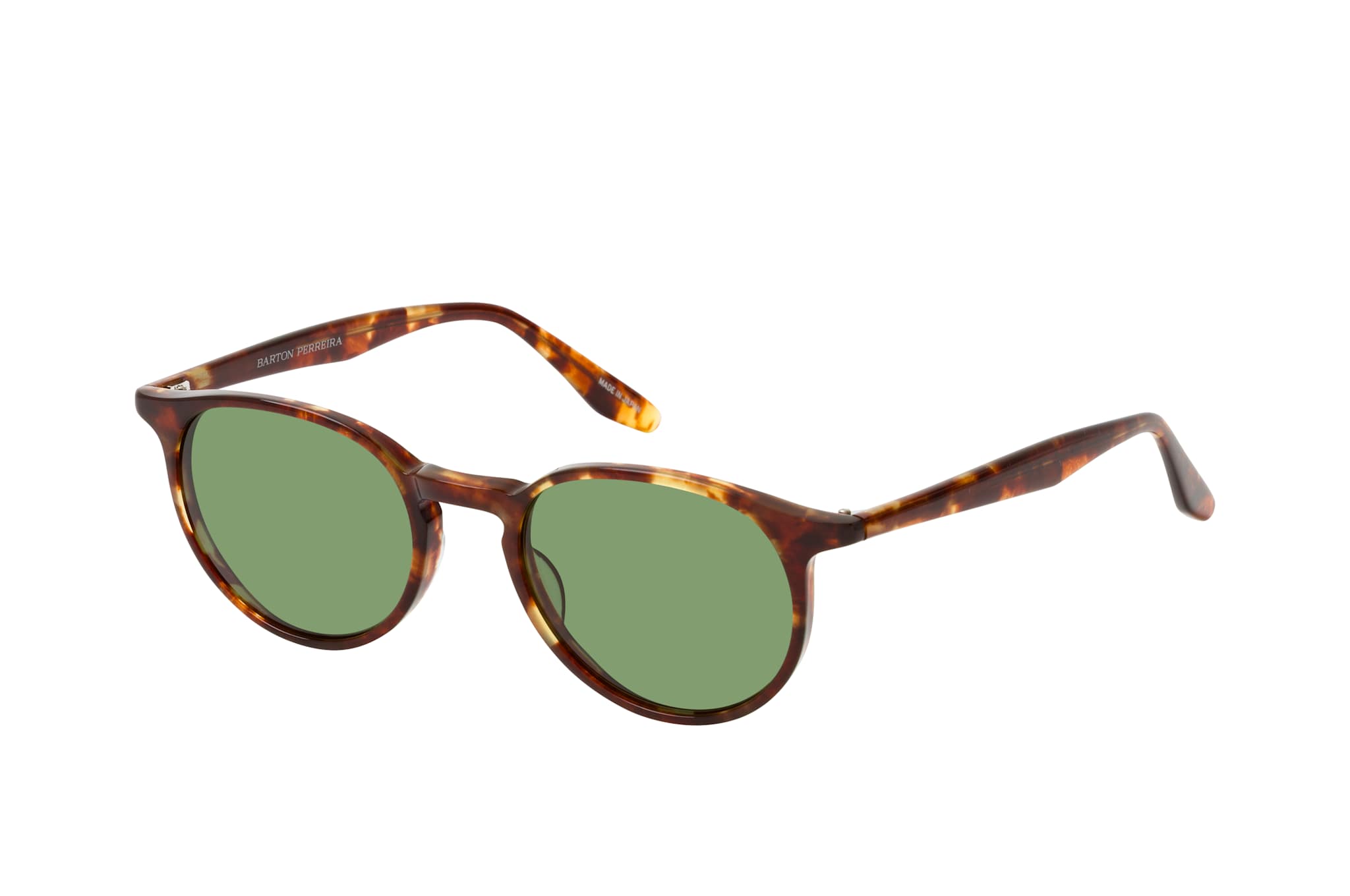 Barton Perreira BP 0068 0MG, Runde Sonnenbrille Herren. Farbe: Havana, Größe: Medium, Rahmentyp: FULLFRAME, Brillenbreite: 132mm, Glashöhe: 40mm, Material: Kunststoff. Stegbreite: 19mm. Glasfarbe: Grün. Mit UV400-Filter. Hersteller: Thelios. Style: