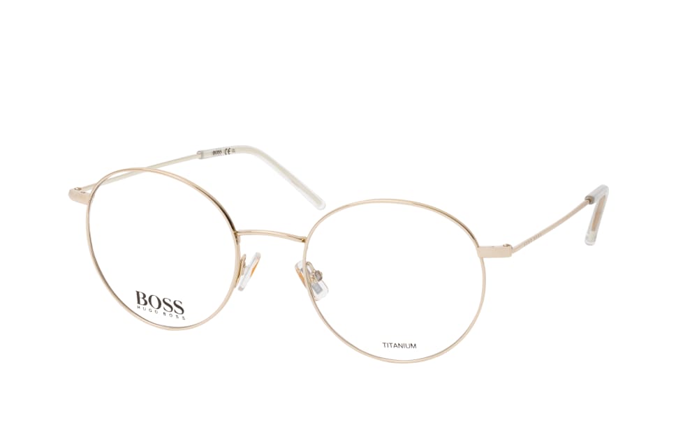 BOSS BOSS 1213 J5G, Runde Brille Damen. Farbe: Goldfarben, Größe: Medium, Rahmentyp: FULLFRAME, Brillenbreite: 136mm, Glashöhe: 47mm, Material: Titan. Stegbreite: 20mm. Glasfarbe: . Glasmaterial: Titan/Titan.Hersteller: Safilo GmbH. Style: