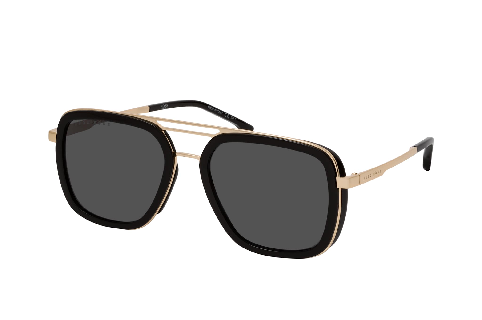 BOSS BOSS 1235/S 807IR, Aviator Sonnenbrille Herren. Farbe: Schwarz, Größe: Medium, Rahmentyp: FULLFRAME, Brillenbreite: 145mm, Glashöhe: 47mm, Material: Kunststoff/Metall. Stegbreite: 19mm. Glasfarbe: Grau. Mit UV400-Filter. Hersteller: Safilo GmbH. Style: MODERN