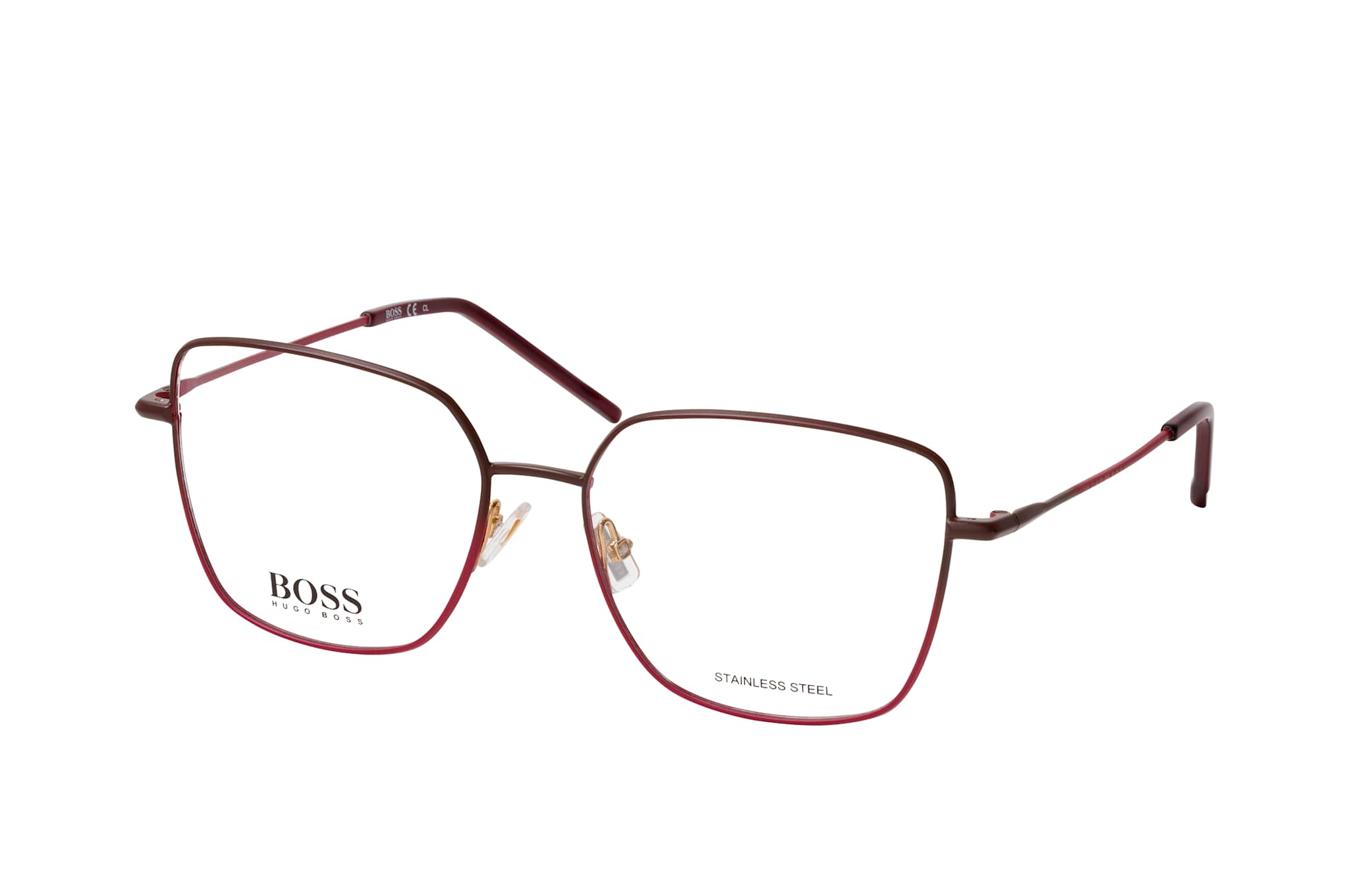BOSS BOSS 1334 7W5, Quadratische Brille Damen. Farbe: Rot, Größe: Medium, Rahmentyp: FULLFRAME, Brillenbreite: 139mm, Glashöhe: 47mm, Material: Metall. Stegbreite: 16mm. Glasfarbe: . Glasmaterial: Metall/Metall.Hersteller: Safilo GmbH. Style: MODERN