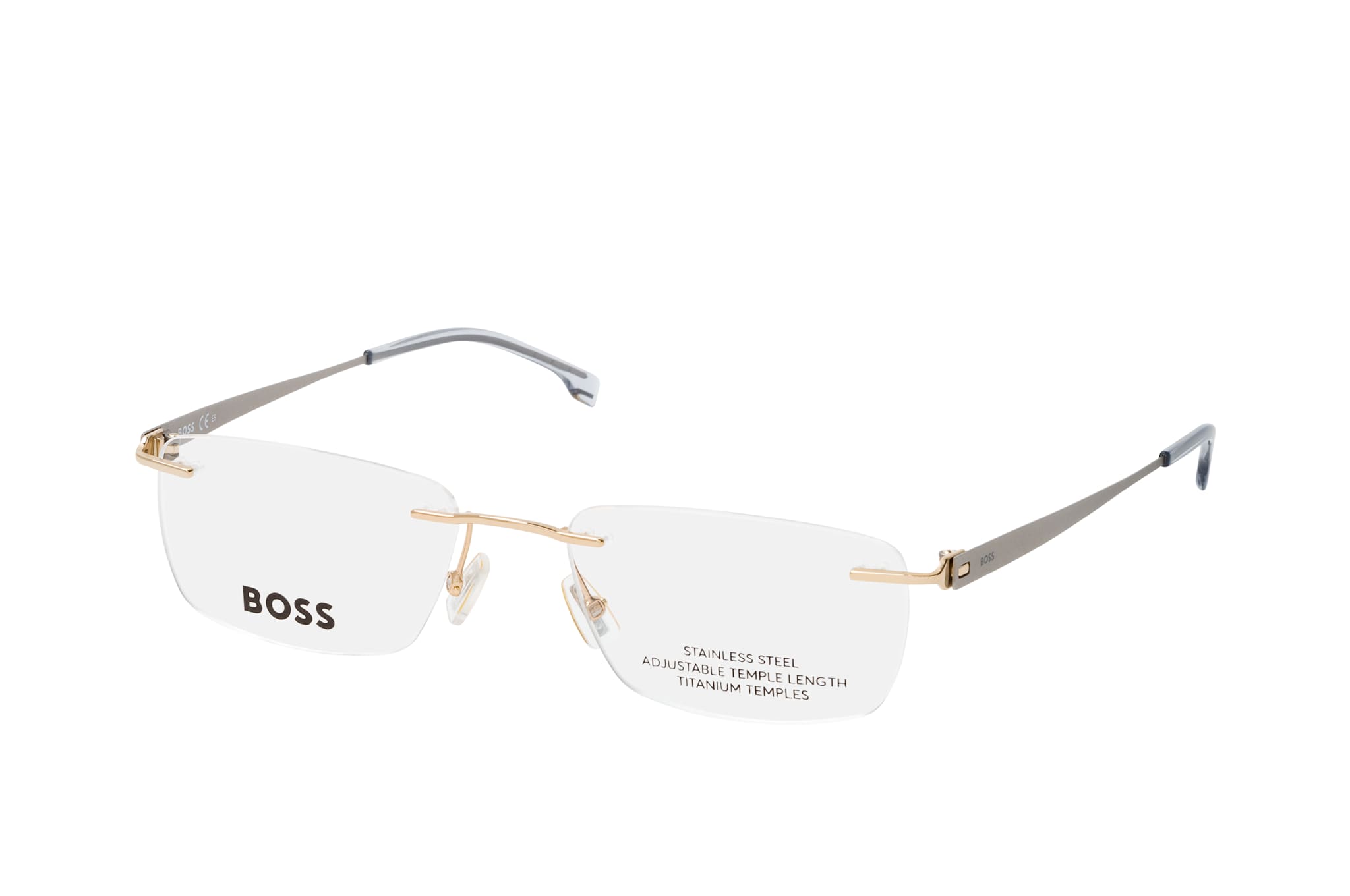 BOSS BOSS 1423 2F7, Rechteckige Brille Herren. Farbe: Goldfarben, Größe: Medium, Rahmentyp: FRAMELESS, Brillenbreite: 135mm, Glashöhe: 33mm, Material: Metall/Titan. Stegbreite: 18mm. Glasfarbe: . Glasmaterial: Titan/Metall.Hersteller: Safilo GmbH. Style: