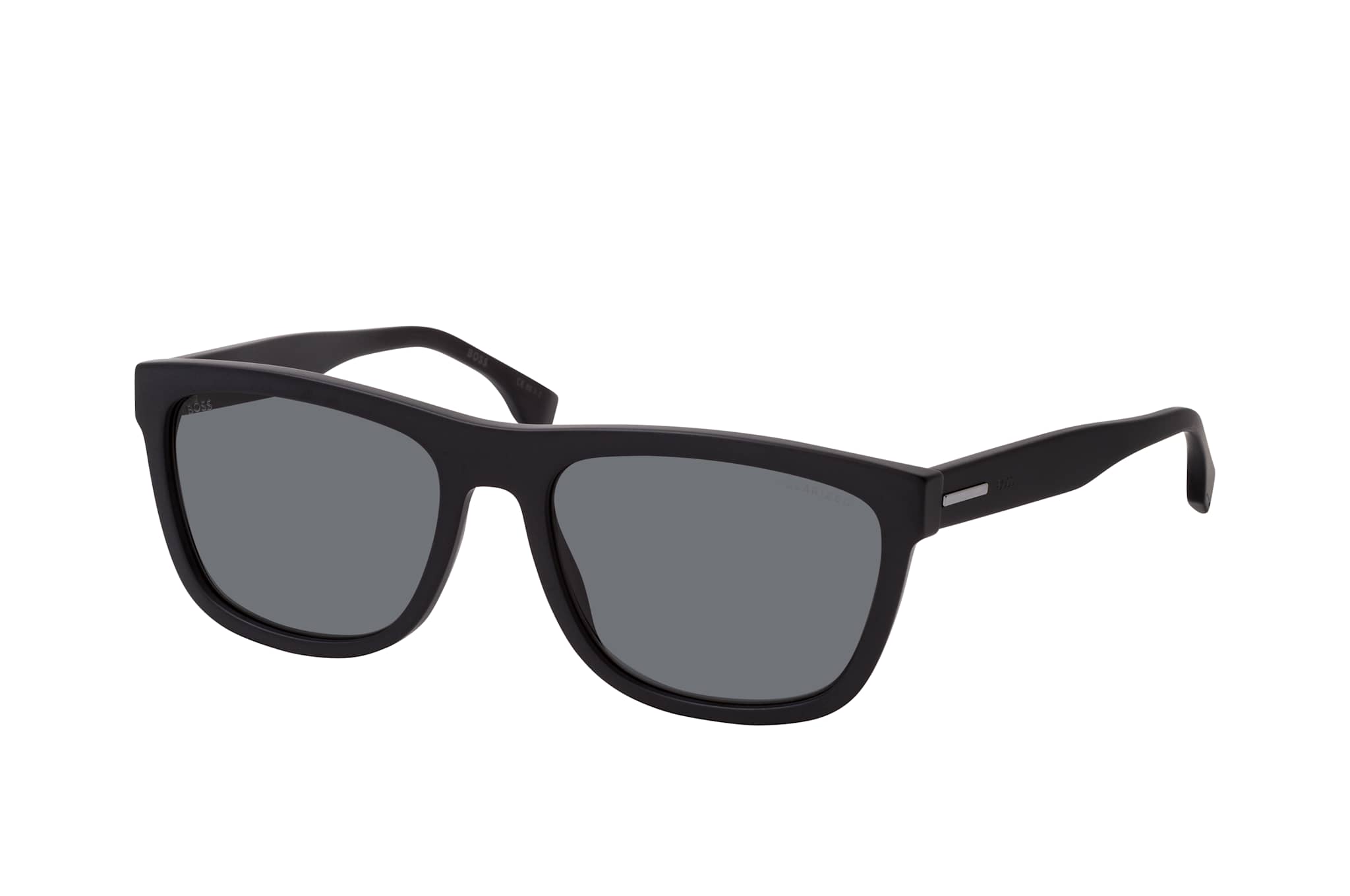 BOSS BOSS 1439/S 003M9, Quadratische Sonnenbrille Herren. Farbe: Schwarz, Größe: Medium, Rahmentyp: FULLFRAME, Brillenbreite: 145mm, Glashöhe: 43mm, Material: Kunststoff. Stegbreite: 18mm. Glasfarbe: Grau. Mit UV400-Filter. Hersteller: Safilo GmbH. Style: CLASSIC