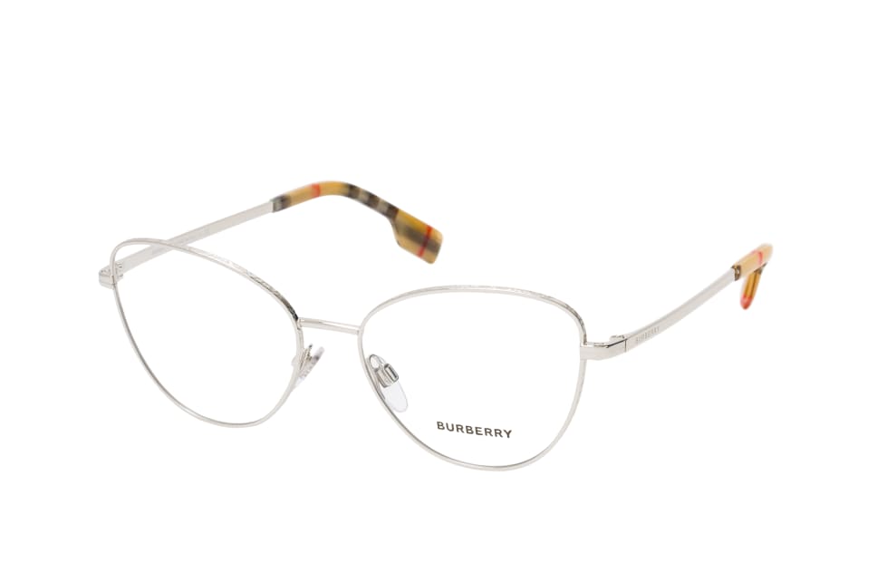 Burberry BE 1341 1005, Cat Eye Brille Damen. Farbe: Silber, Größe: Medium, Rahmentyp: FULLFRAME, Brillenbreite: 133mm, Glashöhe: 44mm, Material: Metall. Stegbreite: 16mm. Glasfarbe: . Glasmaterial: Metall/Metall.Hersteller: Luxottica Fashion Brillen Vertriebs GmbH. Style: EXTRAVAGANT