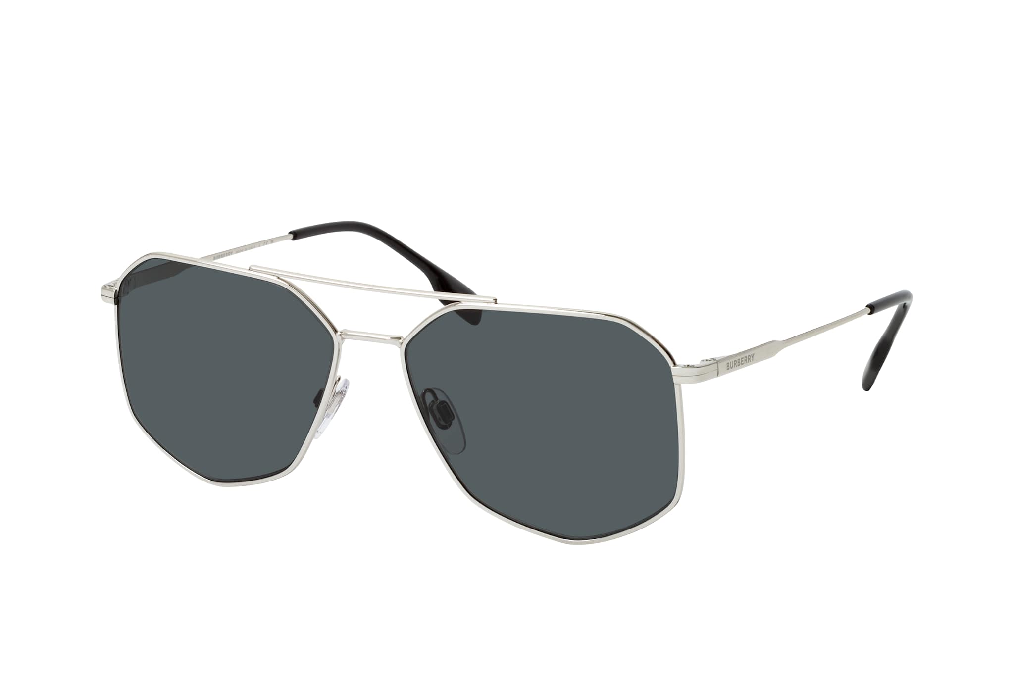 Burberry BE 3139 100587, Aviator Sonnenbrille Herren. Farbe: Silber, Größe: Medium, Rahmentyp: FULLFRAME, Brillenbreite: 140mm, Glashöhe: 50mm, Material: Metall. Stegbreite: 15mm. Glasfarbe: Grau. Mit UV400-Filter. Hersteller: Luxottica Group S.p.A. Style: