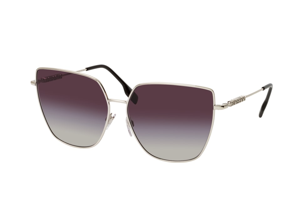 Burberry BE 3143 10058G, Cat Eye Sonnenbrille Damen. Farbe: Silber, Größe: Medium, Rahmentyp: FULLFRAME, Brillenbreite: 147mm, Glashöhe: 56mm, Material: Metall. Stegbreite: 14mm. Glasfarbe: Grau. Mit UV400-Filter. Hersteller: Luxottica Fashion Brillen Vertriebs GmbH. Style: