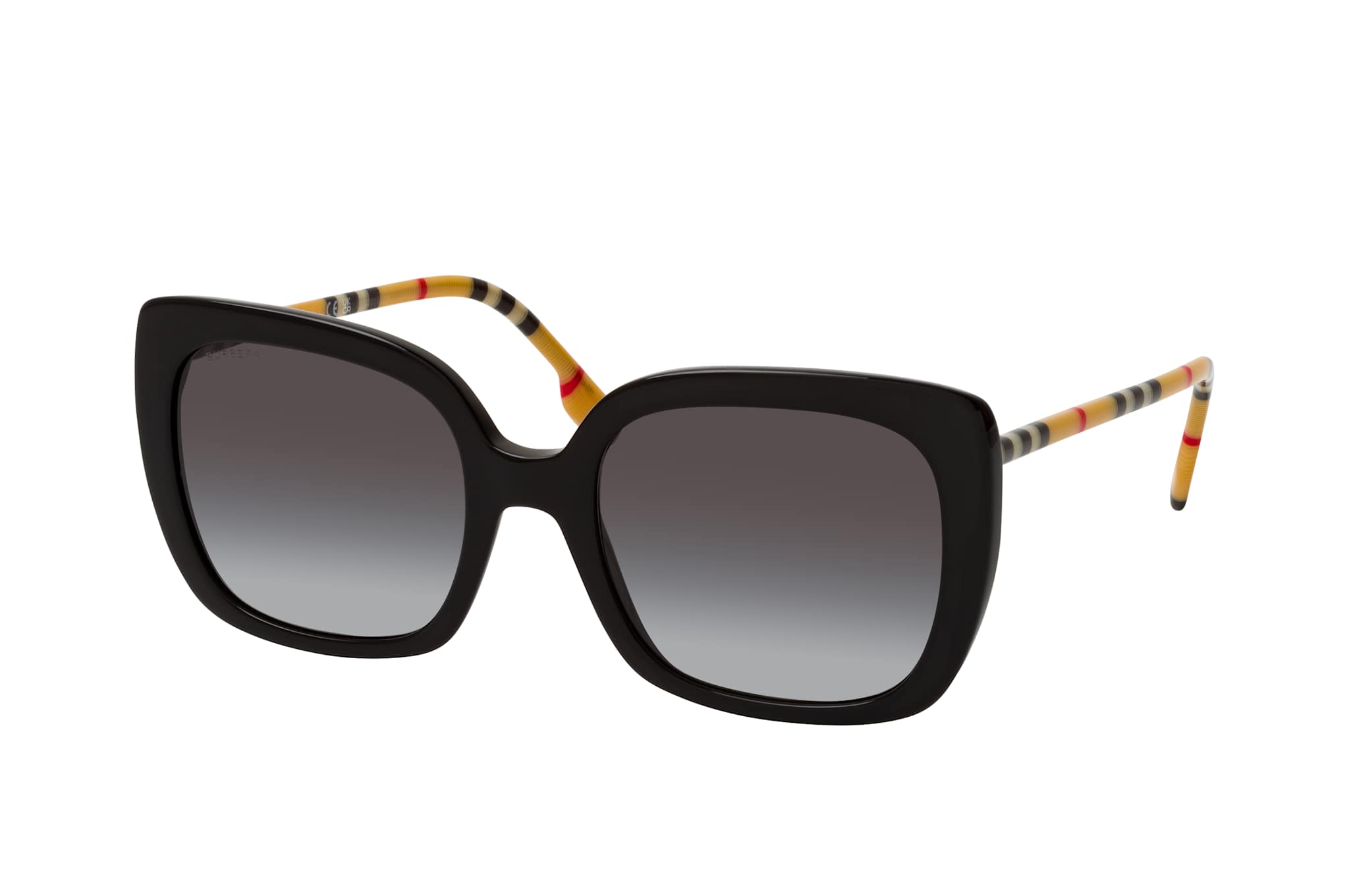 Burberry BE 4323 38538G, Quadratische Sonnenbrille Damen. Farbe: Schwarz, Größe: Medium, Rahmentyp: FULLFRAME, Brillenbreite: 138mm, Glashöhe: 48mm, Material: Kunststoff. Stegbreite: 20mm. Glasfarbe: Grau. Mit UV400-Filter. Hersteller: Luxottica Group S.p.A. Style: