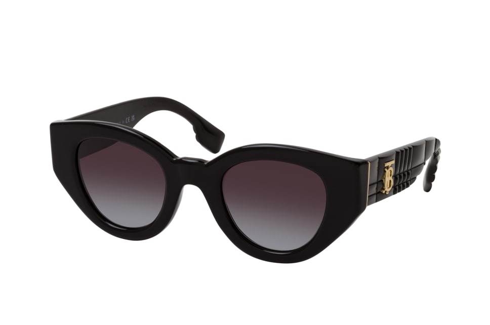 Burberry BE 4390 30018G, Runde Sonnenbrille Damen. Farbe: Schwarz, Größe: Medium, Rahmentyp: FULLFRAME, Brillenbreite: 145mm, Glashöhe: 41mm, Material: Kunststoff. Stegbreite: 25mm. Glasfarbe: Verlaufsglas Grau. Mit UV400-Filter. Hersteller: Luxottica Fashion Brillen Vertriebs GmbH. Style: