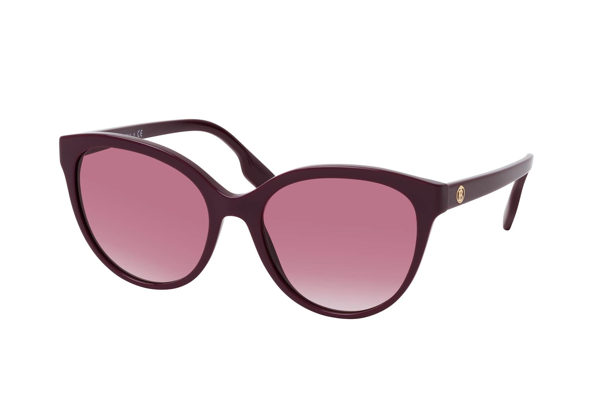 Burberry Betty BE 4365 39798H, Cat Eye Sonnenbrille Damen. Farbe: Rot, Größe: Medium, Rahmentyp: FULLFRAME, Brillenbreite: 141mm, Glashöhe: 49mm, Material: Kunststoff. Stegbreite: 18mm. Glasfarbe: Lila. Mit UV400-Filter. Hersteller: Luxottica Group S.p.A. Style: MODERN