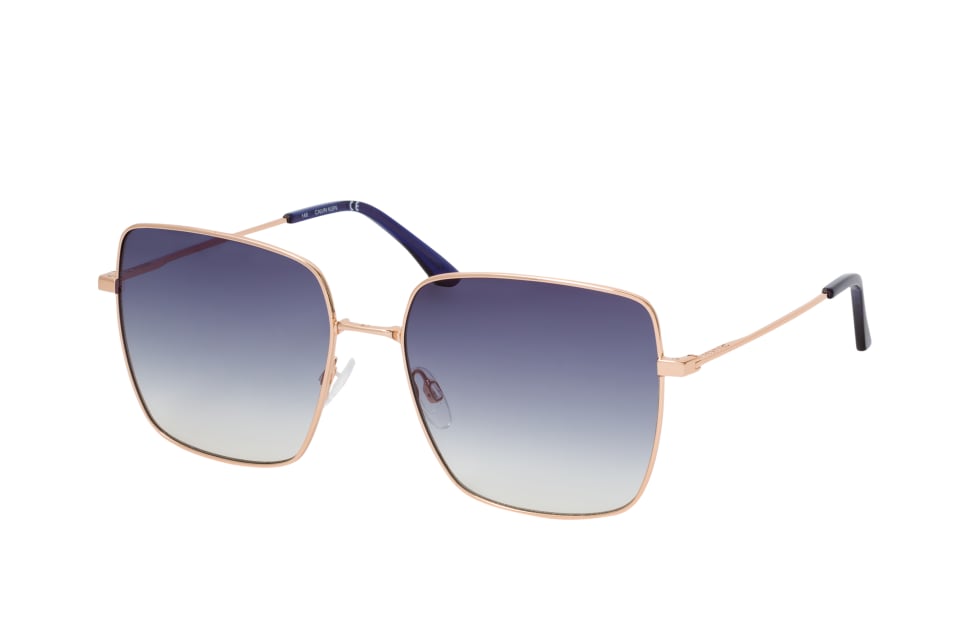 Calvin Klein CK 20135S 780, Quadratische Sonnenbrille Damen. Farbe: Goldfarben, Größe: Medium, Rahmentyp: FULLFRAME, Brillenbreite: 143mm, Glashöhe: 53mm, Material: Metall. Stegbreite: 17mm. Glasfarbe: Blau. Mit UV400-Filter. Hersteller: Marchon Germany GmbH. Style: EXTRAVAGANT
