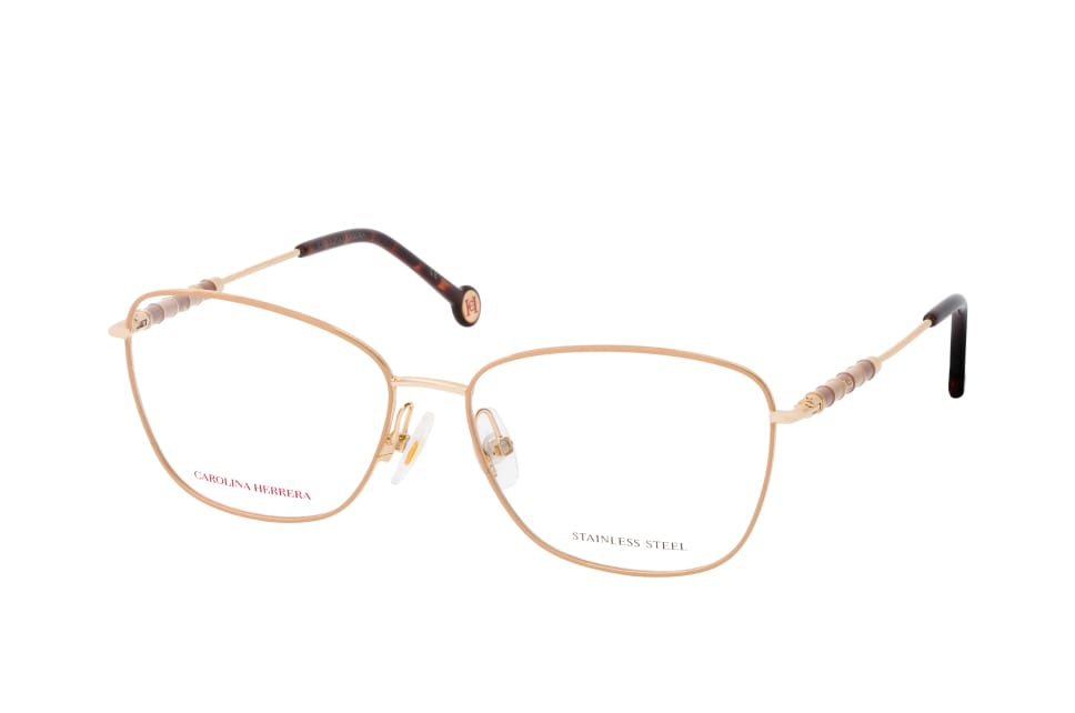 Carolina Herrera CH 0039 BKU, Rechteckige Brille Damen. Farbe: Beige, Größe: Medium, Rahmentyp: FULLFRAME, Brillenbreite: 132mm, Glashöhe: 41mm, Material: Metall. Stegbreite: 15mm. Glasfarbe: . Glasmaterial: Metall/Metall.Hersteller: Safilo GmbH. Style: MODERN