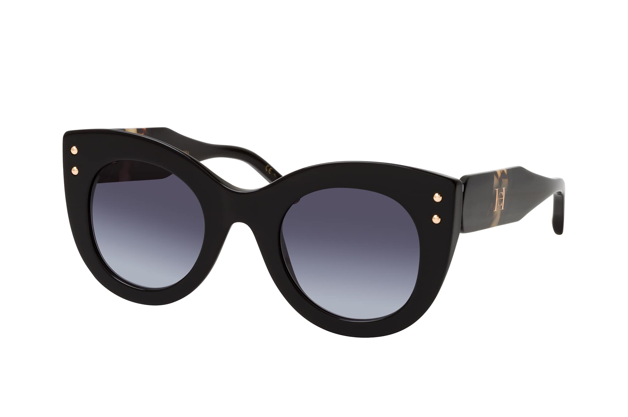 Carolina Herrera HER 0127/S WR7, Cat Eye Sonnenbrille Damen. Farbe: Schwarz, Größe: Medium, Rahmentyp: FULLFRAME, Brillenbreite: 147mm, Glashöhe: 47mm, Material: Kunststoff. Stegbreite: 26mm. Glasfarbe: Grau. Mit UV400-Filter. Hersteller: Safilo GmbH. Style: