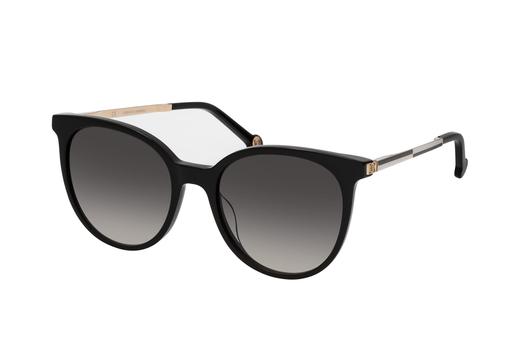 Carolina Herrera SHE 861 0700, Runde Sonnenbrille Damen. Farbe: Schwarz, Größe: Medium, Rahmentyp: FULLFRAME, Brillenbreite: 136mm, Glashöhe: 48mm, Material: Kunststoff/Metall. Stegbreite: 18mm. Glasfarbe: Grau. Mit UV400-Filter. Hersteller: De Rigo Vision S.p.A. Style: MODERN