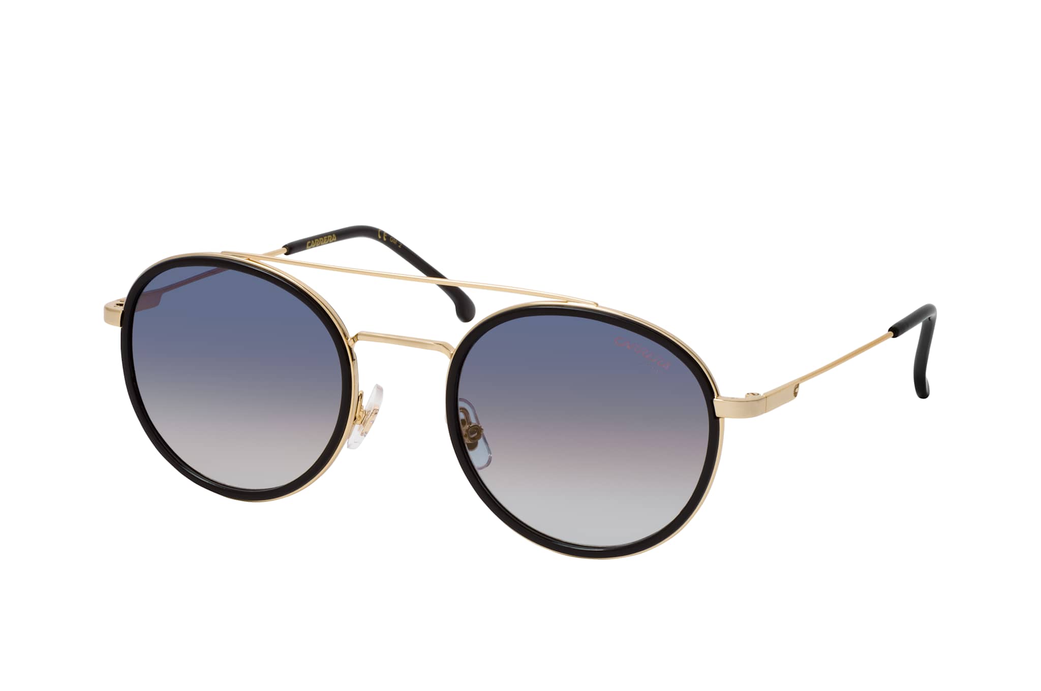 Carrera CA 2028T/S RHL, Runde Sonnenbrille Damen. Farbe: Schwarz, Größe: Medium, Rahmentyp: FULLFRAME, Brillenbreite: 134mm, Glashöhe: 45mm, Material: Kunststoff/Metall. Stegbreite: 22mm. Glasfarbe: Blau. Mit UV400-Filter. Hersteller: Safilo GmbH. Style: MODERN