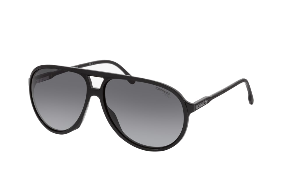 Carrera CARRERA 237/S 807, Aviator Sonnenbrille Herren. Farbe: Schwarz, Größe: Medium, Rahmentyp: FULLFRAME, Brillenbreite: 143mm, Glashöhe: 53mm, Material: Kunststoff. Stegbreite: 13mm. Glasfarbe: Grau. Mit UV400-Filter. Hersteller: Safilo GmbH. Style: MODERN