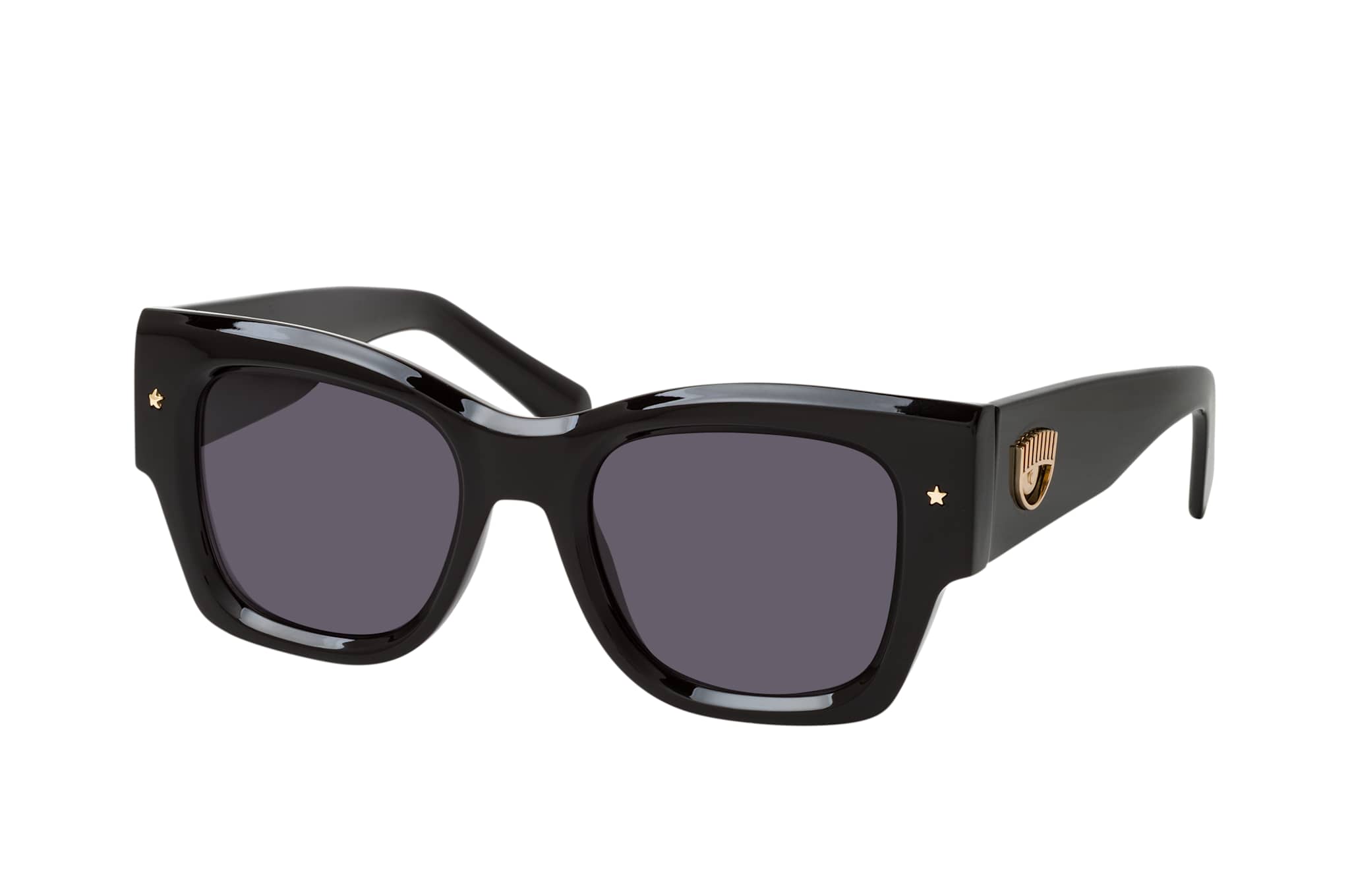 CHIARA FERRAGNI CF 7023/S 807, Quadratische Sonnenbrille Damen. Farbe: Schwarz, Größe: Medium, Rahmentyp: FULLFRAME, Brillenbreite: 140mm, Glashöhe: 42mm, Material: Kunststoff. Stegbreite: 20mm. Glasfarbe: Grau. Mit UV400-Filter. Hersteller: Safilo GmbH. Style: