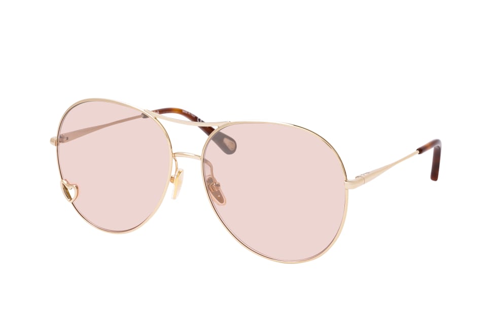Chloé CH 0028S 004, Aviator Sonnenbrille Damen. Farbe: Goldfarben, Größe: Medium, Rahmentyp: FULLFRAME, Brillenbreite: 147mm, Glashöhe: 61mm, Material: Metall. Stegbreite: 15mm. Glasfarbe: Rosa. Mit UV400-Filter. Hersteller: Kering Eyewear DACH GmbH. Style: EXTRAVAGANT