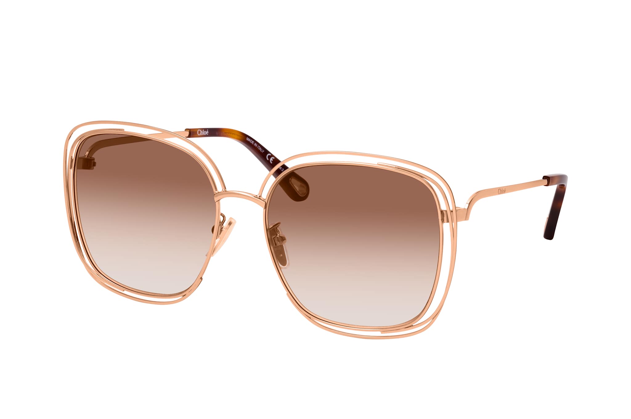 Chloé CH 0077SK 002, Cat Eye Sonnenbrille Damen. Farbe: Roségold, Größe: Medium, Rahmentyp: FULLFRAME, Brillenbreite: 136mm, Glashöhe: 54mm, Material: Metall. Stegbreite: 16mm. Glasfarbe: Braun. Mit UV400-Filter. Hersteller: Kering Eyewear DACH GmbH. Style: EXTRAVAGANT