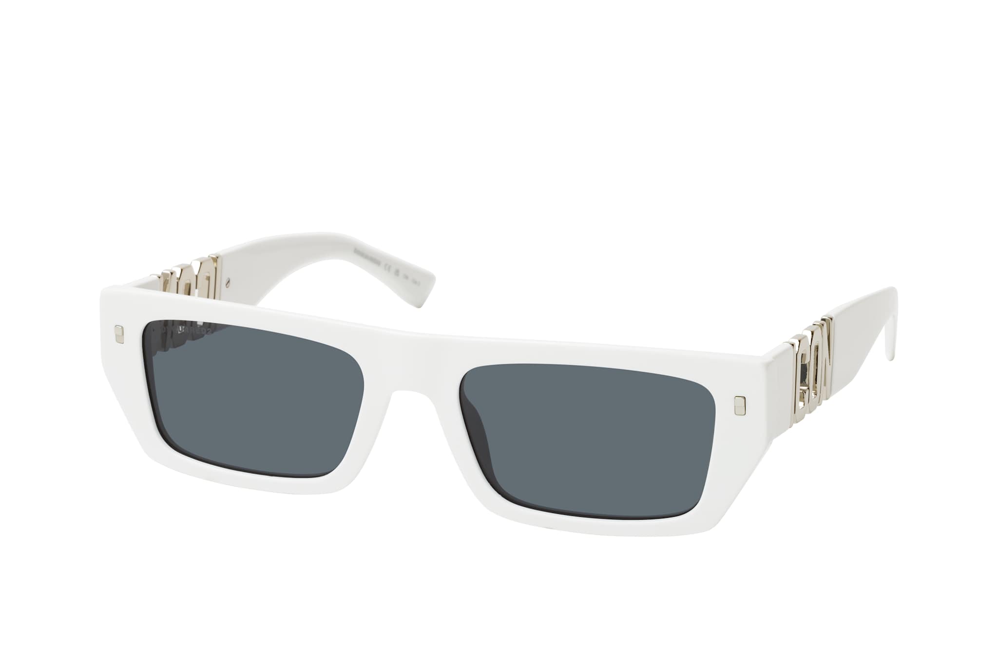 Dsquared2 ICON 0011/S VK6, Rechteckige Sonnenbrille Herren. Farbe: Weiss, Größe: Medium, Rahmentyp: FULLFRAME, Brillenbreite: 145mm, Glashöhe: 34mm, Material: Kunststoff. Stegbreite: 19mm. Glasfarbe: Grau. Mit UV400-Filter. Hersteller: Safilo GmbH. Style: