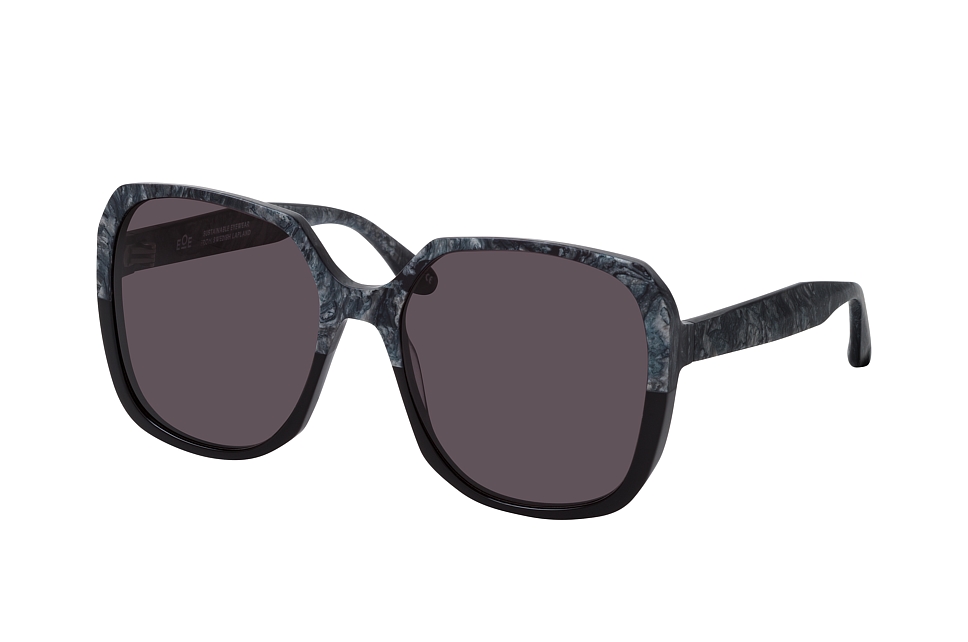 EOE Ängsvide Northern Black, Rechteckige Sonnenbrille Damen. Farbe: Grau, Größe: Medium, Rahmentyp: FULLFRAME, Brillenbreite: 143mm, Glashöhe: 57mm, Material: Kunststoff. Stegbreite: 19mm. Glasfarbe: Grau. Mit UV400-Filter. Hersteller: EOE EYEWEAR AB. Style: