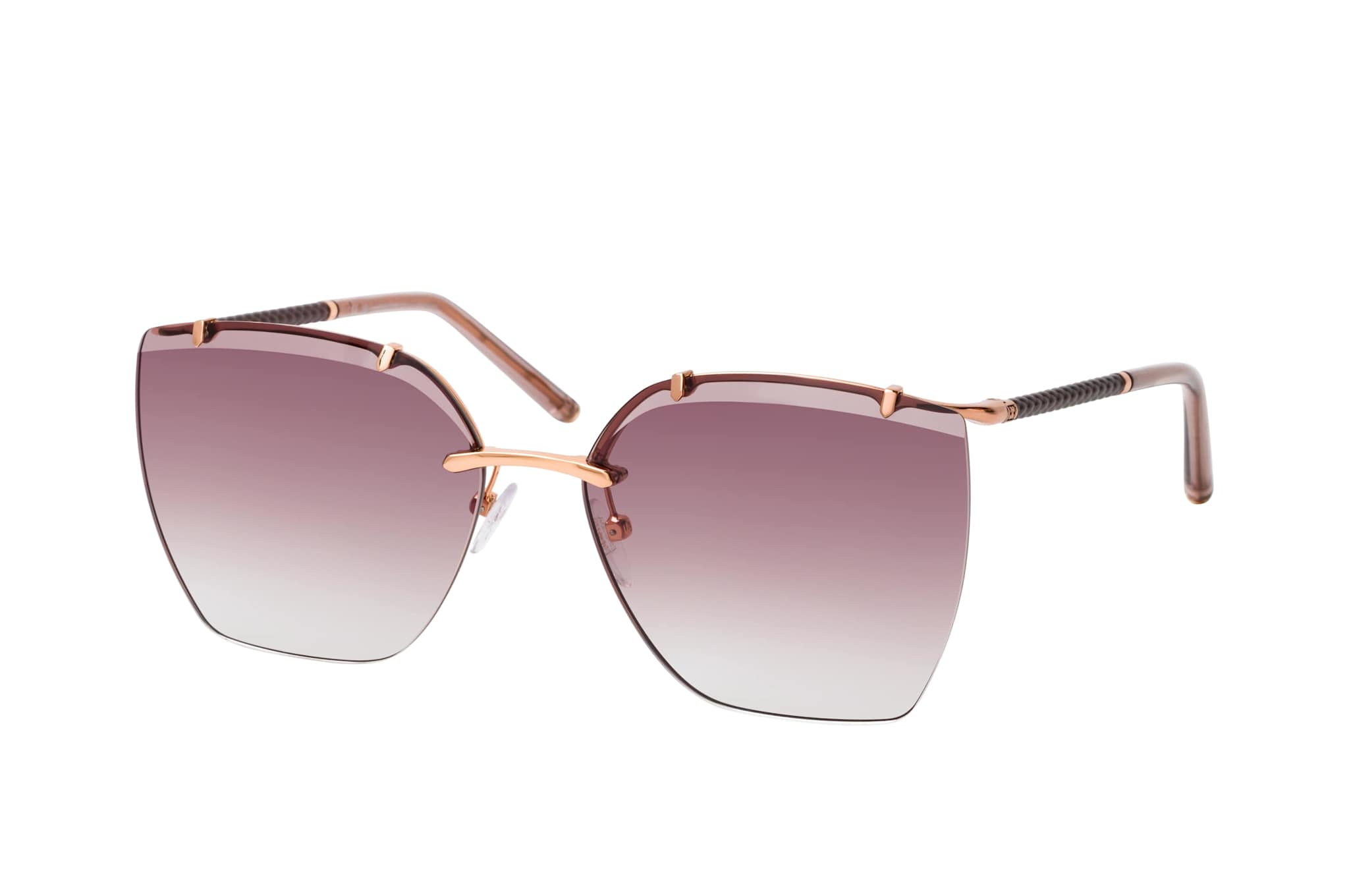 Escada SESE 67 08FC, Quadratische Sonnenbrille Damen. Farbe: Goldfarben, Größe: Medium, Rahmentyp: FRAMELESS, Brillenbreite: 140mm, Glashöhe: 55mm, Material: Metall. Stegbreite: 16mm. Glasfarbe: Braun. Mit UV400-Filter. Hersteller: De Rigo Vision S.p.A. Style: