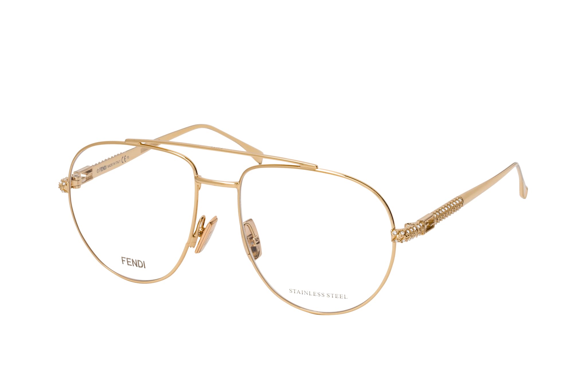 Fendi FF 0446 J5G, Aviator Brille Damen. Farbe: Goldfarben, Größe: Medium, Rahmentyp: FULLFRAME, Brillenbreite: 137mm, Glashöhe: 52mm, Material: Metall. Stegbreite: 17mm. Glasfarbe: . Glasmaterial: Metall/Metall.Hersteller: Safilo GmbH. Style: EXTRAVAGANT