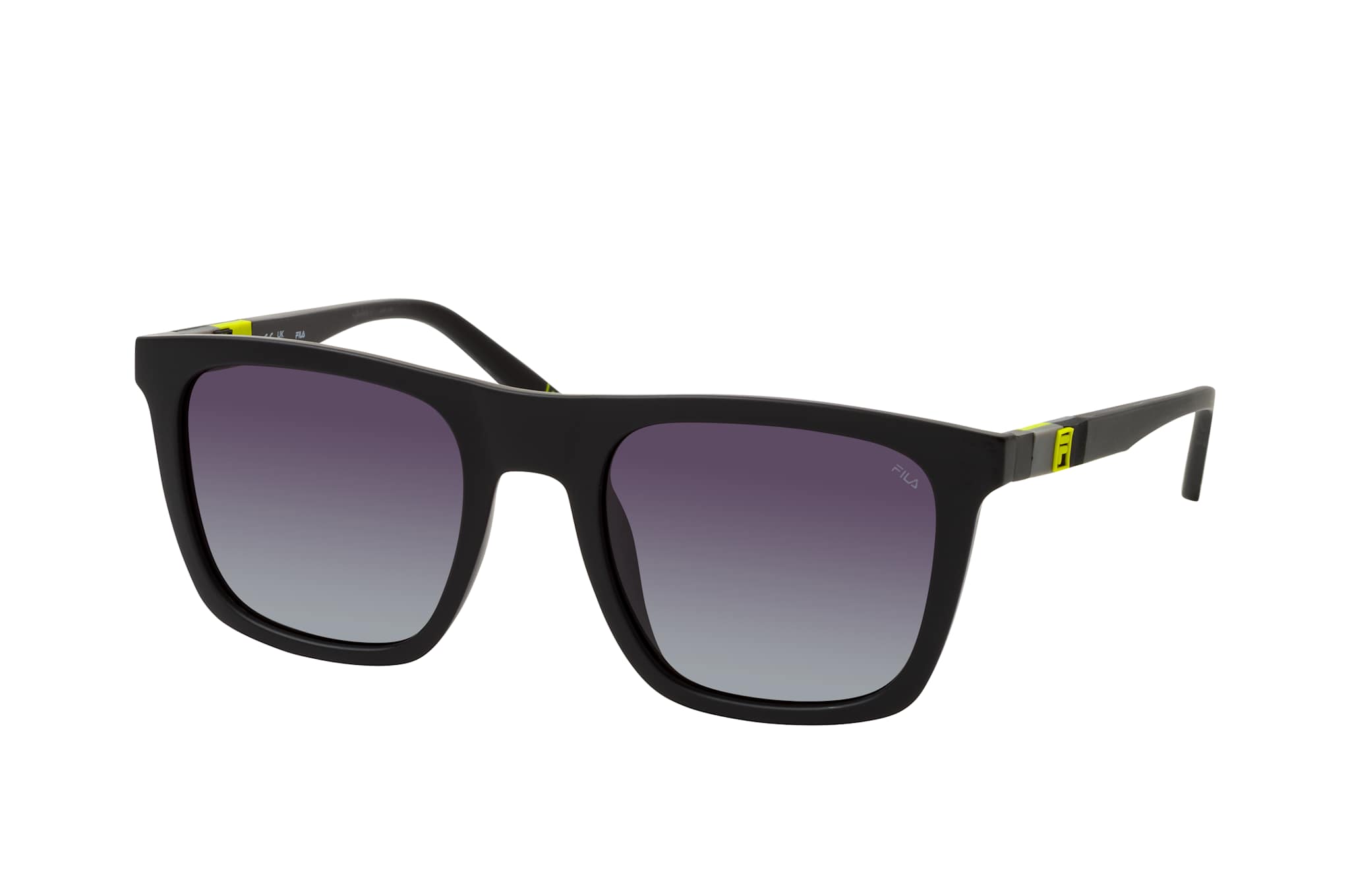 Fila SFI 527 U28P, Quadratische Sonnenbrille Herren. Farbe: Schwarz, Größe: Medium, Rahmentyp: FULLFRAME, Brillenbreite: 142mm, Glashöhe: 45mm, Material: Kunststoff. Stegbreite: 21mm. Glasfarbe: Grau. Mit UV400-Filter. Hersteller: De Rigo Vision S.p.A. Style: