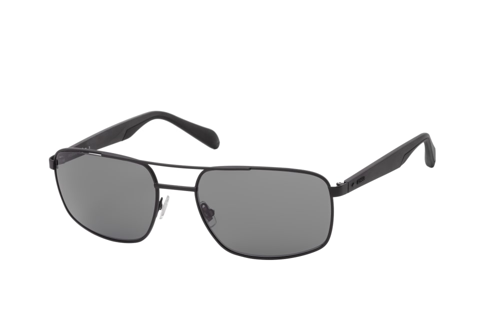 Fossil FOS 2088/S 003, Rechteckige Sonnenbrille Herren. Farbe: Schwarz, Größe: Medium, Rahmentyp: FULLFRAME, Brillenbreite: 143mm, Glashöhe: 43mm, Material: Metall/Kunststoff. Stegbreite: 19mm. Glasfarbe: Grau. Mit UV400-Filter. Hersteller: Safilo GmbH. Style: CLASSIC