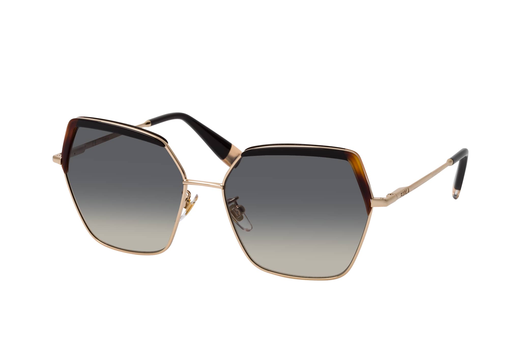 Furla SFU 599V 0300, Quadratische Sonnenbrille Damen. Farbe: Goldfarben, Größe: Medium, Rahmentyp: FULLFRAME, Brillenbreite: 142mm, Glashöhe: 50mm, Material: Metall. Stegbreite: 16mm. Glasfarbe: Grau. Mit UV400-Filter. Hersteller: De Rigo Vision S.p.A. Style: