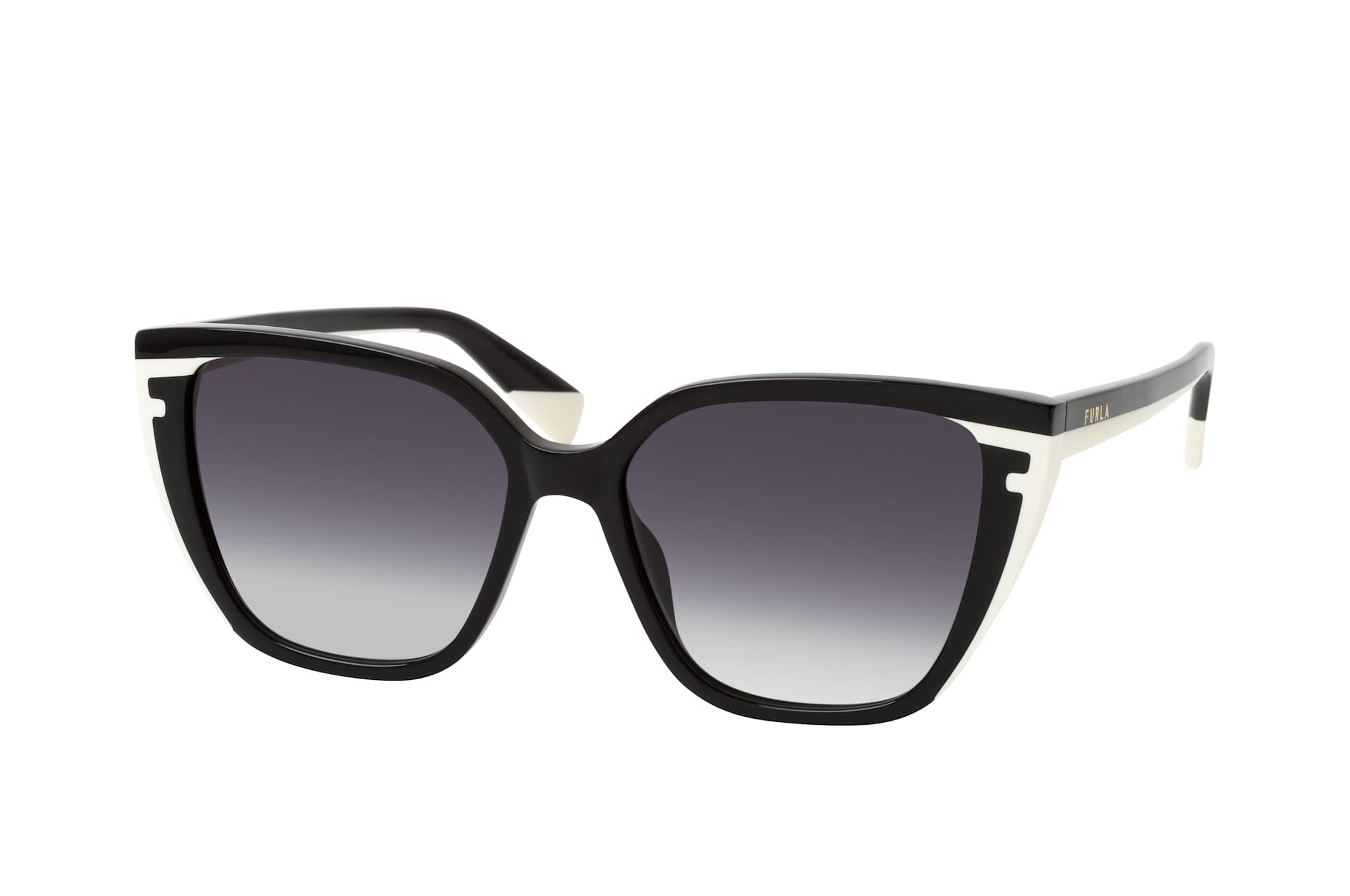 Furla SFU 782 0700, Quadratische Sonnenbrille Damen. Farbe: Schwarz, Größe: Medium, Rahmentyp: FULLFRAME, Brillenbreite: 144mm, Glashöhe: 48mm, Material: Kunststoff. Stegbreite: 16mm. Glasfarbe: Grau. Mit UV400-Filter. Hersteller: De Rigo Vision S.p.A. Style: