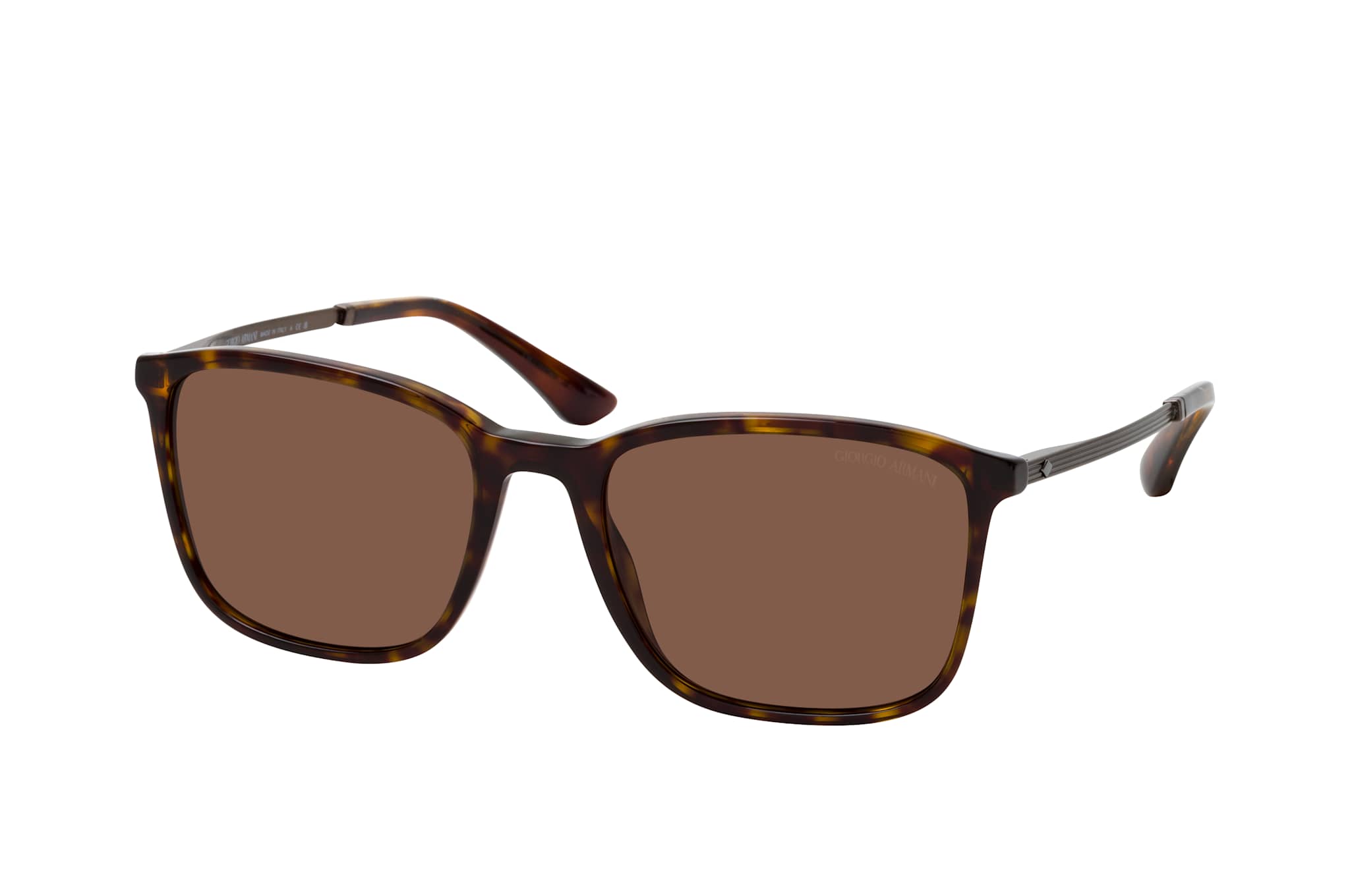 Giorgio Armani 0AR8197 502673, Quadratische Sonnenbrille Herren. Farbe: Havana, Größe: Medium, Rahmentyp: FULLFRAME, Brillenbreite: 140mm, Glashöhe: 44mm, Material: Kunststoff/Metall. Stegbreite: 19mm. Glasfarbe: Braun. Mit UV400-Filter. Hersteller: Luxottica Group S.p.A. Style: