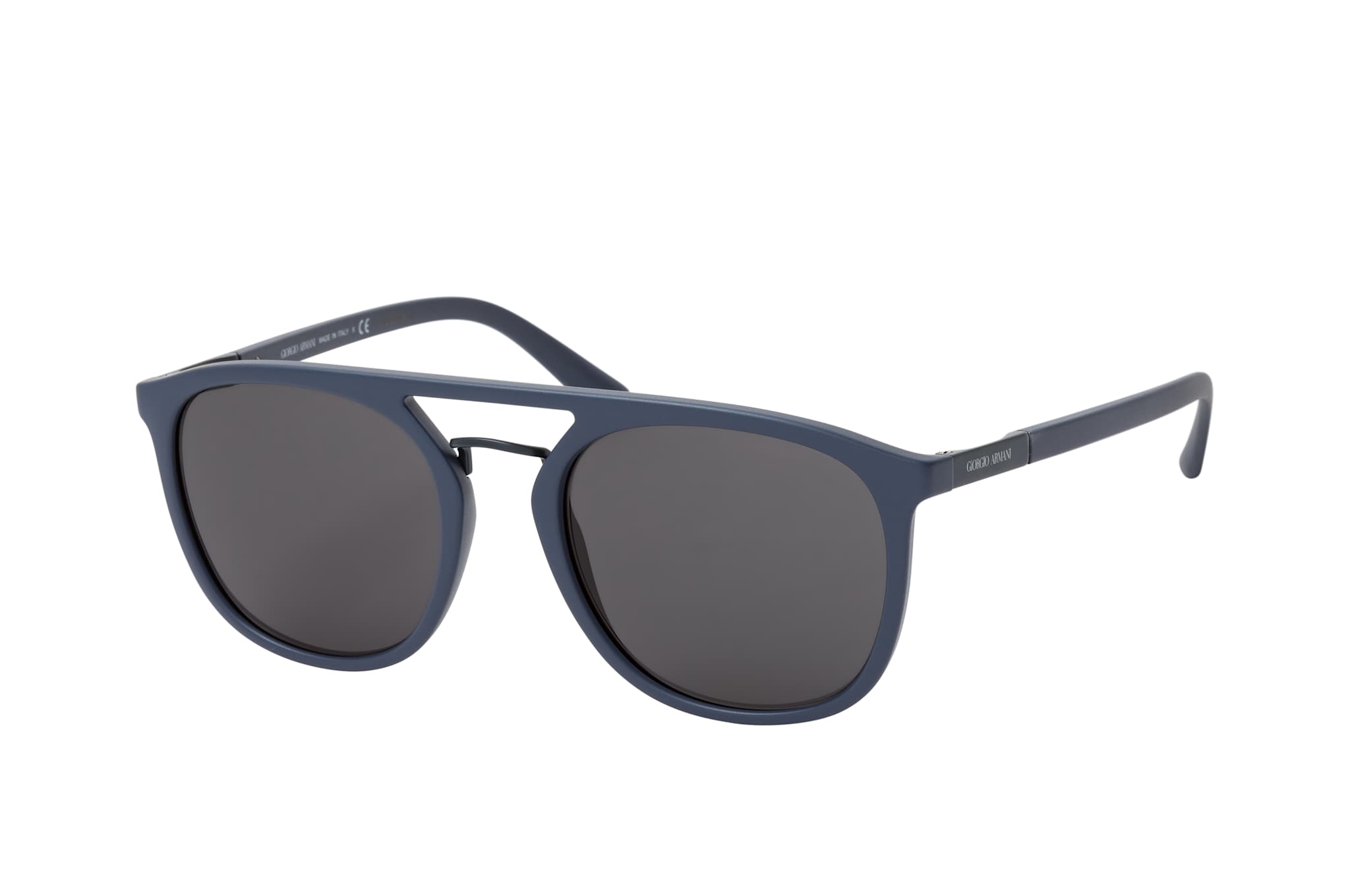 Giorgio Armani AR 8118 573561, Quadratische Sonnenbrille Herren. Farbe: Blau, Größe: Medium, Rahmentyp: FULLFRAME, Brillenbreite: 139mm, Glashöhe: 48mm, Material: Kunststoff. Stegbreite: 20mm. Glasfarbe: Grau. Mit UV400-Filter. Hersteller: Luxottica Group S.p.A. Style: MODERN