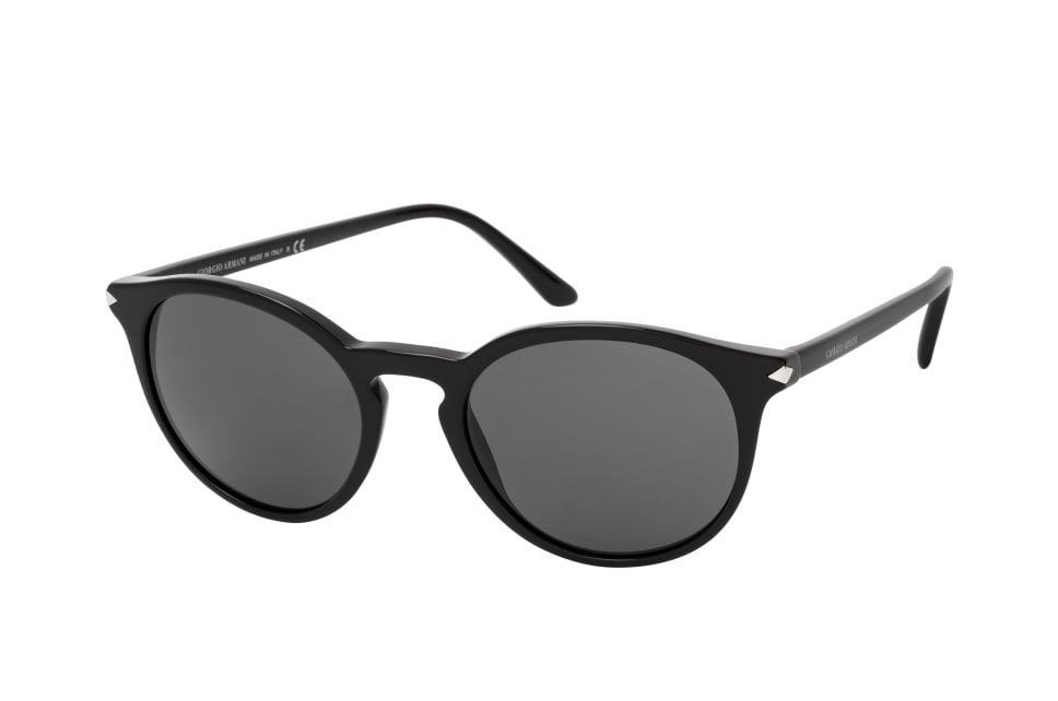 Giorgio Armani AR 8122 5001, Runde Sonnenbrille Herren. Farbe: Schwarz, Größe: Medium, Rahmentyp: FULLFRAME, Brillenbreite: 138mm, Glashöhe: 46mm, Material: Kunststoff. Stegbreite: 20mm. Glasfarbe: Grau. Mit UV400-Filter. Hersteller: Luxottica Fashion Brillen Vertriebs GmbH. Style: MODERN