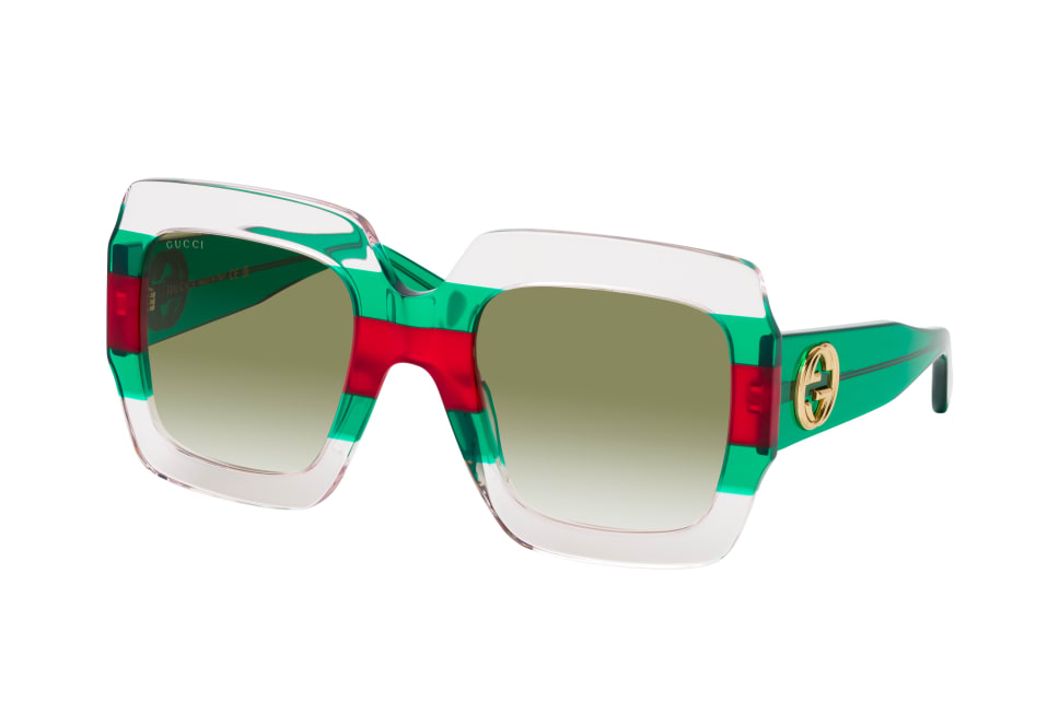 Gucci GG 0178S 001, Cat Eye Sonnenbrille Damen. Farbe: Transparent, Größe: Medium, Rahmentyp: FULLFRAME, Brillenbreite: 146mm, Glashöhe: 50mm, Material: Kunststoff. Stegbreite: 25mm. Glasfarbe: Grün. Mit UV400-Filter. Hersteller: Kering Eyewear DACH GmbH. Style: EXTRAVAGANT