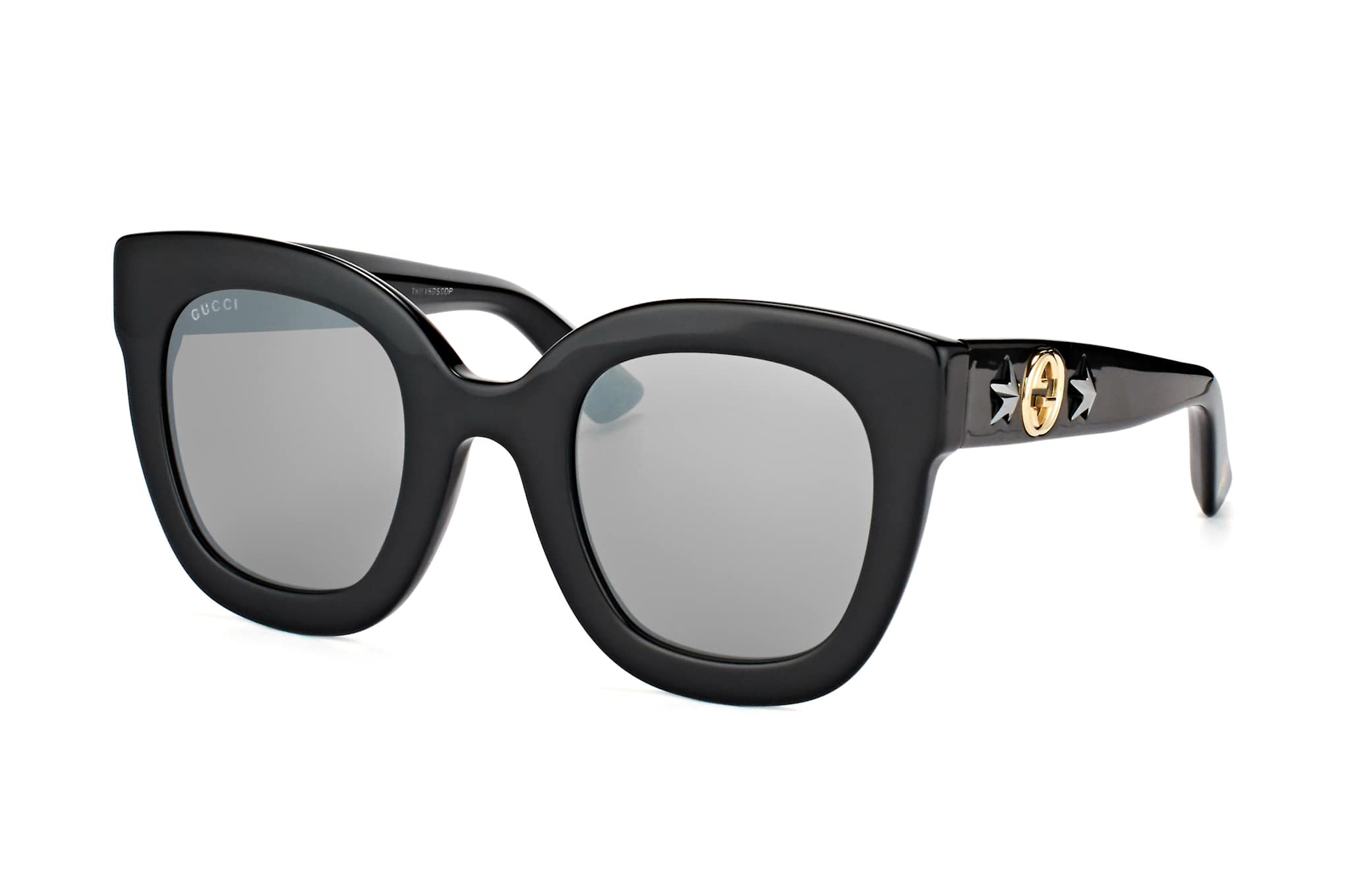 Gucci GG 0208S 002, Cat Eye Sonnenbrille Damen. Farbe: Schwarz, Größe: Medium, Rahmentyp: FULLFRAME, Brillenbreite: 145mm, Glashöhe: 48mm, Material: Kunststoff. Stegbreite: 28mm. Glasfarbe: Grau. Mit UV400-Filter. Hersteller: Kering Eyewear DACH GmbH. Style: EXTRAVAGANT