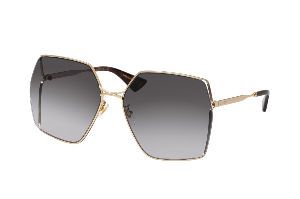 Gucci GG 0817S 001, Quadratische Sonnenbrille Damen. Farbe: Goldfarben, Größe: Medium, Rahmentyp: HALFFRAME, Brillenbreite: 138mm, Glashöhe: 61mm, Material: Metall. Stegbreite: 17mm. Glasfarbe: Grau. Mit UV400-Filter. Hersteller: Kering Eyewear DACH GmbH. Style: EXTRAVAGANT