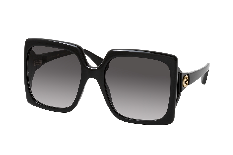 Gucci GG 0876S 001, Quadratische Sonnenbrille Damen. Farbe: Schwarz, Größe: Medium, Rahmentyp: FULLFRAME, Brillenbreite: 144mm, Glashöhe: 56mm, Material: Kunststoff. Stegbreite: 20mm. Glasfarbe: Grau. Mit UV400-Filter. Hersteller: Kering Eyewear DACH GmbH. Style: EXTRAVAGANT