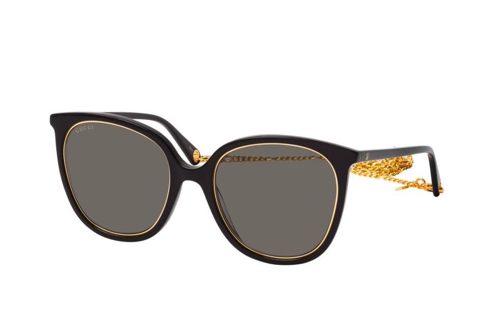 Gucci GG 1076S 001, Runde Sonnenbrille Damen. Farbe: Schwarz, Größe: Medium, Rahmentyp: FULLFRAME, Brillenbreite: 148mm, Glashöhe: 53mm, Material: Kunststoff. Stegbreite: 21mm. Glasfarbe: Grau. Mit UV400-Filter. Hersteller: Kering Eyewear DACH GmbH. Style: MODERN