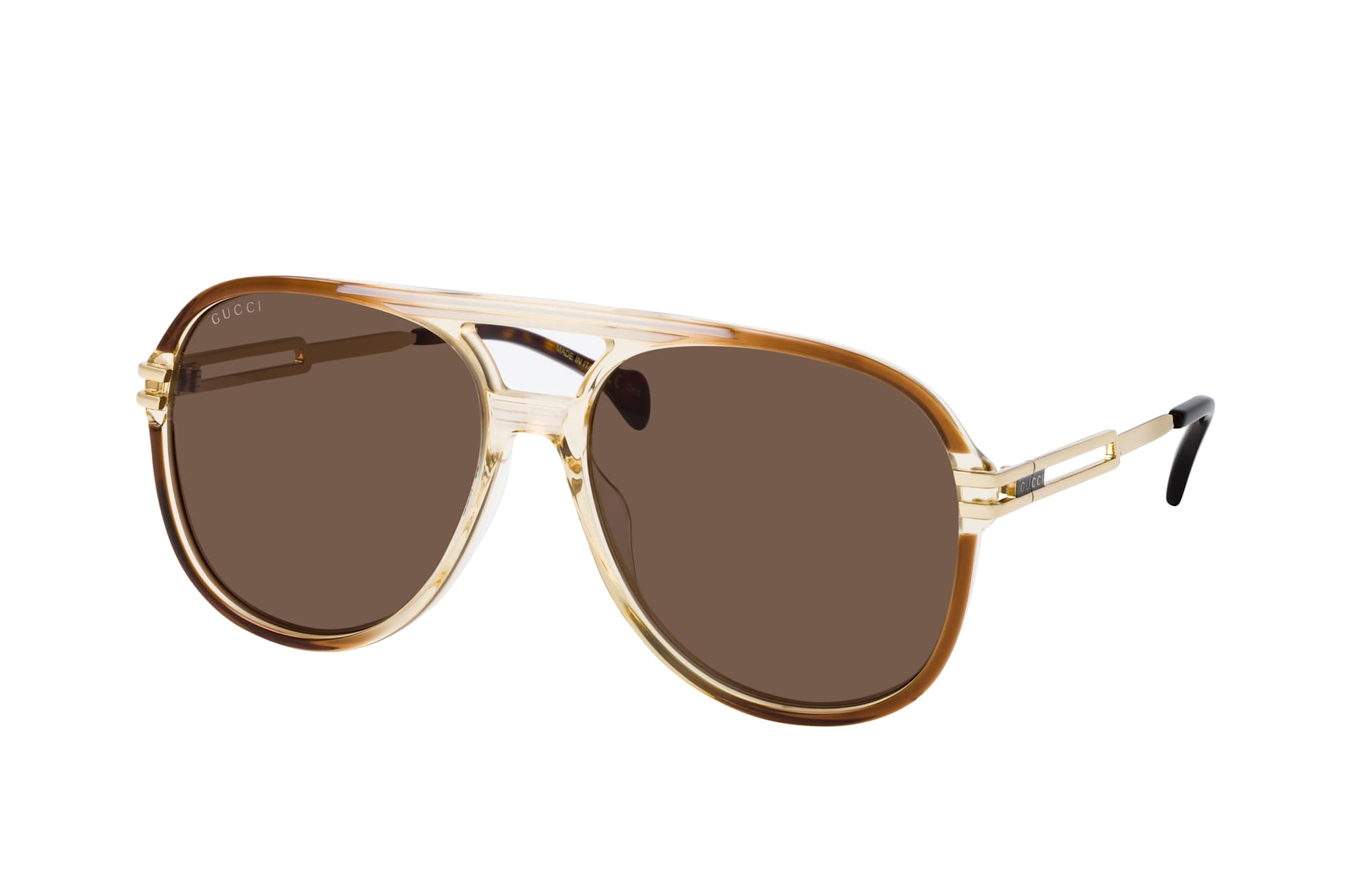 Gucci GG 1104S 002, Aviator Sonnenbrille Herren. Farbe: Braun, Größe: Medium, Rahmentyp: FULLFRAME, Brillenbreite: 148mm, Glashöhe: 58mm, Material: Kunststoff/Metall. Stegbreite: 16mm. Glasfarbe: Braun. Mit UV400-Filter. Hersteller: Kering Eyewear DACH GmbH. Style: EXTRAVAGANT