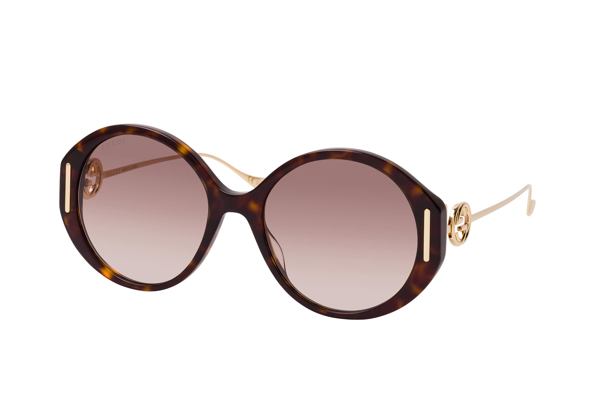 Gucci GG 1202S 003, Runde Sonnenbrille Damen. Farbe: Havana, Größe: Medium, Rahmentyp: FULLFRAME, Brillenbreite: 148mm, Glashöhe: 55mm, Material: Kunststoff/Metall. Stegbreite: 19mm. Glasfarbe: Braun. Mit UV400-Filter. Hersteller: Kering Eyewear DACH GmbH. Style: