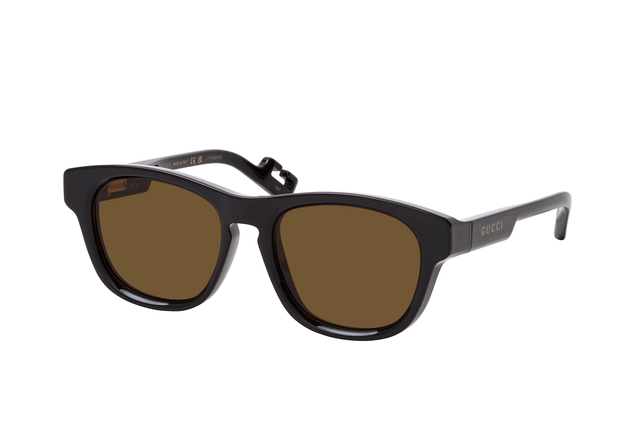 Gucci GG 1238S 001, Runde Sonnenbrille Herren. Farbe: Schwarz, Größe: Medium, Rahmentyp: FULLFRAME, Brillenbreite: 146mm, Glashöhe: 44mm, Material: Kunststoff. Stegbreite: 18mm. Glasfarbe: Braun. Mit UV400-Filter. Hersteller: Kering Eyewear DACH GmbH. Style: