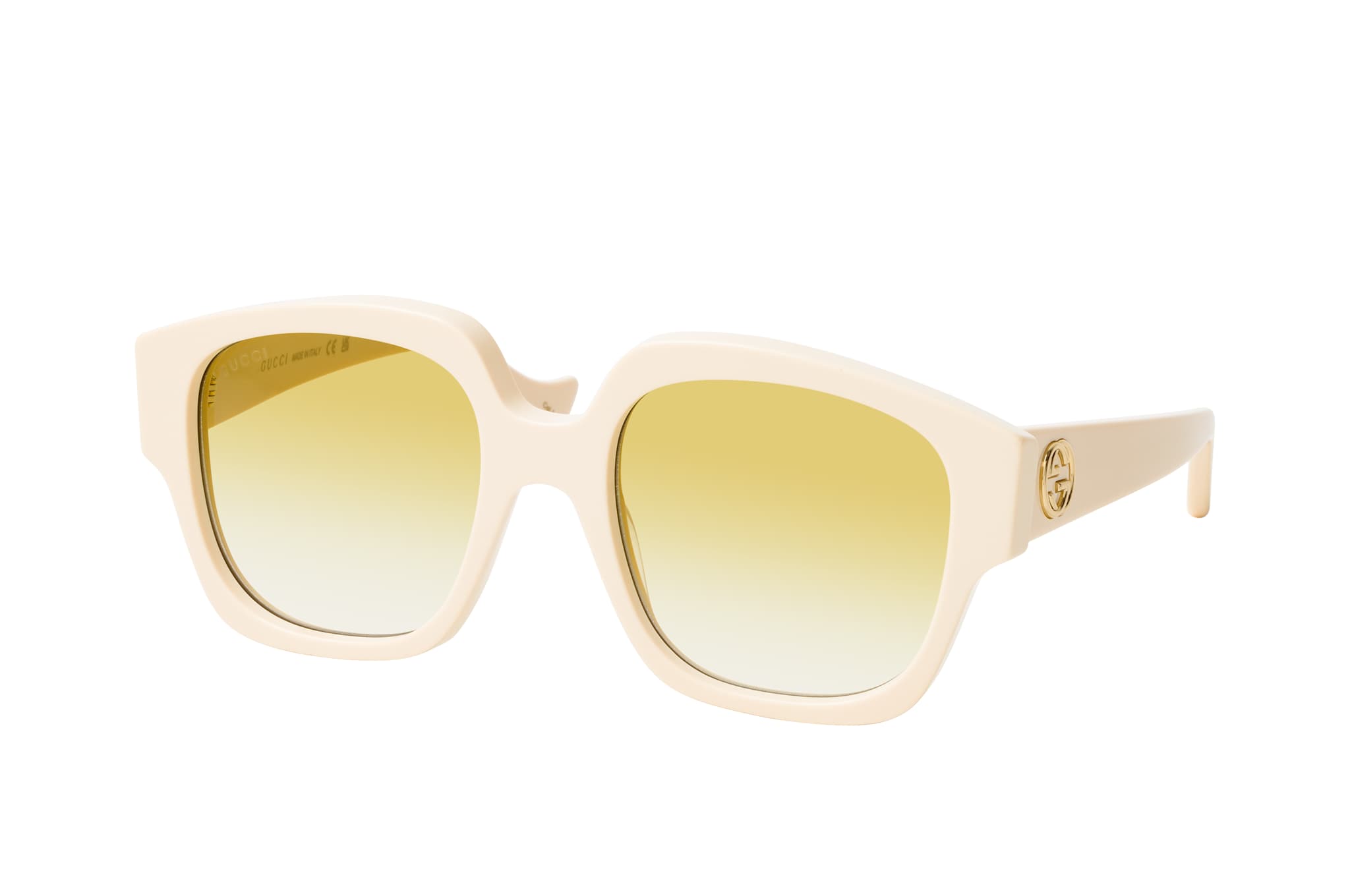 Gucci GG 1372S 001, Quadratische Sonnenbrille Damen. Farbe: Weiss, Größe: Medium, Rahmentyp: FULLFRAME, Brillenbreite: 150mm, Glashöhe: 52mm, Material: Kunststoff. Stegbreite: 20mm. Glasfarbe: Gelb. Mit UV400-Filter. Hersteller: Kering Eyewear DACH GmbH. Style: