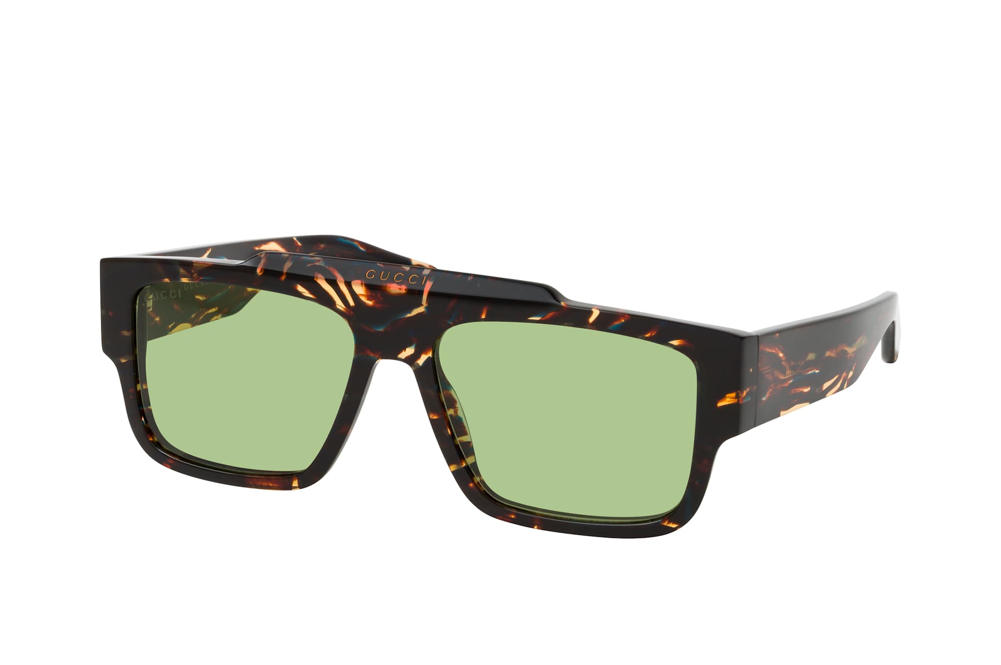 Gucci GG 1460S 002, Quadratische Sonnenbrille Herren. Farbe: Havana, Größe: Medium, Rahmentyp: FULLFRAME, Brillenbreite: 145mm, Glashöhe: 42mm, Material: Kunststoff. Stegbreite: 16mm. Glasfarbe: Grün. Mit UV400-Filter. Hersteller: Kering Eyewear DACH GmbH. Style: